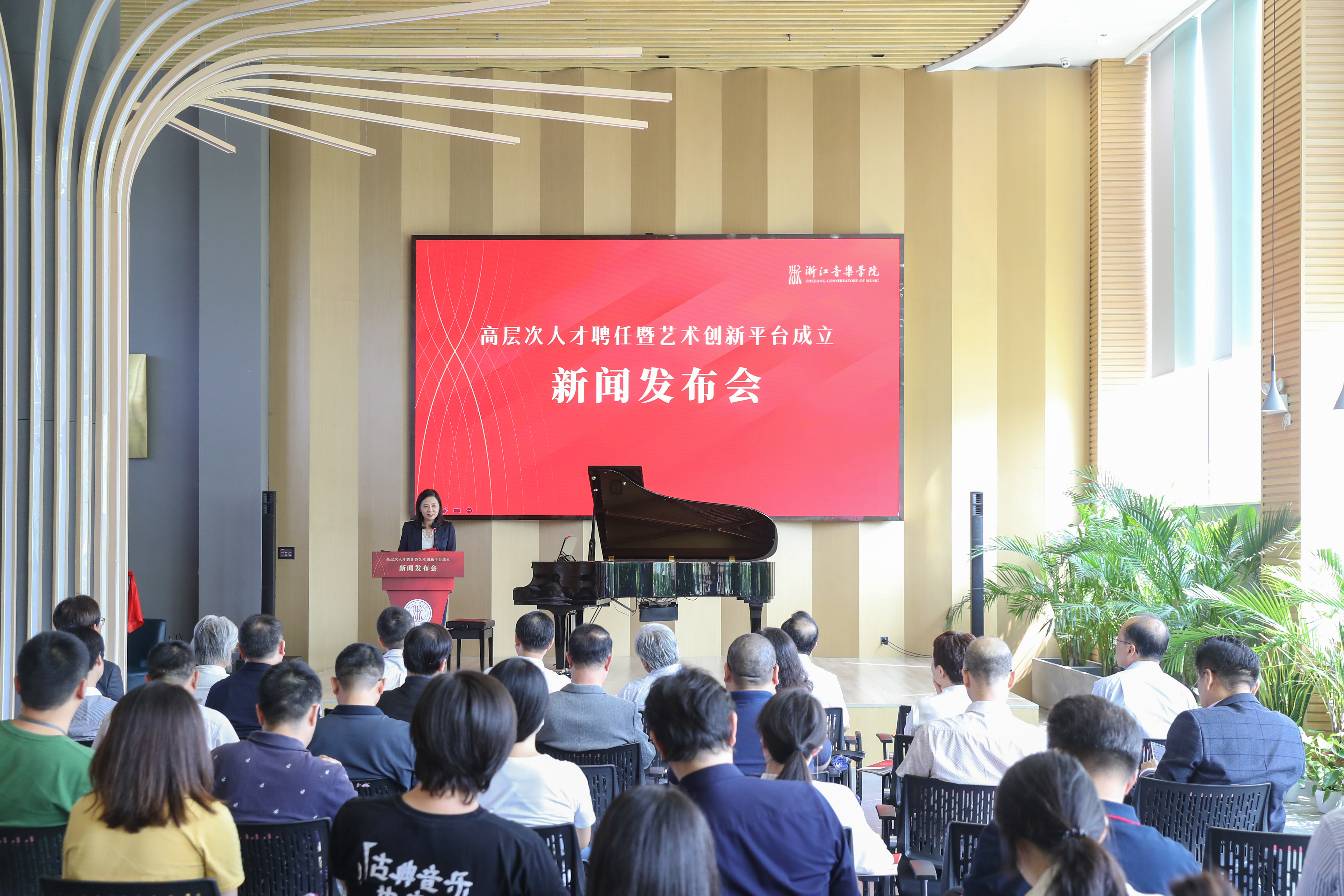 作者:孟欣 来源:人才办、宣传部 发布时间:2022-09-30为认真落实中央和省委人才工作重要决策部署,全面推进“聚天下英才而用之”的人才强校战略思想,9月30日上午,学院举办高层次人才聘任暨艺术创新平台成立新闻发布会,宣布了又一批国际顶尖艺术大师加盟、与浙江交响乐团签约共建乐队学院、成立民族室内乐团和室内管弦乐团等一系列重磅消息。省文化和旅游厅一级巡视员柳河、科技与教育处处长郑妮,学院党政领导班子成员干武东、王瑞、蔡亦军、杨九华、奚丽萍、李俊出席发布会。此次受聘的艺术家有著名指挥家张艺,著名女高音歌唱家孙秀苇,瑞士籍著名艺术家、钢琴家、作曲家罗曼·克鲁莫夫,著名作曲家、电子声学音乐专家安承弼,著名指挥家王甫建,青年指挥家焦阳,浙江交响乐团团长郭义江,浙江交响乐团首席何凡亮相发布会。发布会由学院党委副书记蔡亦军主持。