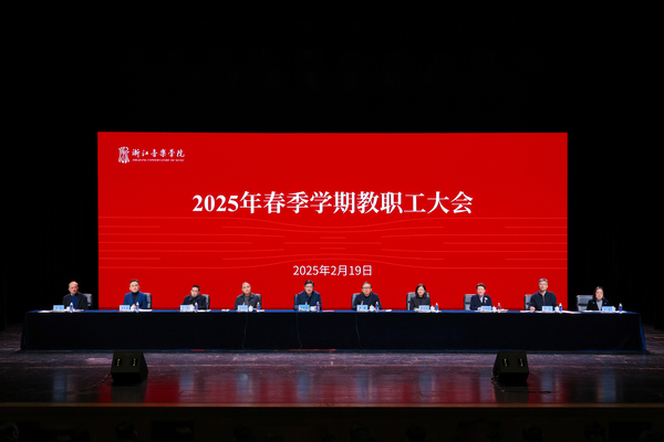干武东表示,当前高校正处在加快转型升级、奋力推进高质量发展的历史机遇期,高等教育面临着教育国际化新趋势、特色发展新格局,以及新型教育生态重构的机遇与挑战。面对新形势、新任务,他提出,做好2025年工作的总体要求是:坚持以习近平新时代中国特色社会主义思想为指导,全面落实习近平总书记关于教育的重要论述和全国教育大会精神,以立德树人为根本,以学科建设为龙头,以人才培养为中心,以艺术创演为主线,坚持以改革创新激发新活力,以高水平开放拓展新空间,大力推进学校高质量内涵式发展,加快“高水平一流”音乐学院建设,不断增强服务国家战略和区域经济社会发展的能力。要突出聚焦的重点工作:一是坚持育人本位,加快形成教学科研创作表演四位一体工作体系。要坚持以教学、科研为主体,以创作、表演为两翼,积极打造教学、科研、创作、表演四位一体发展模式。二是坚持人才强校,加快打造国内音乐艺术人才集聚高地。要按照省委省政府关于“三支队伍”建设要求,扎实推进“3343”人才工作体系,锻造政治过硬的干部队伍、建设德才兼备的人才队伍、培养师德高尚的教师队伍。三是坚持综合改革,加快推进学校治理体系和治理能力现代化。要以二级管理改革为撬点,不断完善管理体制;以制度建设为支点,加快健全保障体系;以潜力拓展为增点,深度挖掘资源保障;以平安校园建设为基点,全面夯实发展根基。四是坚持党建引领,持之以恒推进全面从严治党向纵深发展。要找准党建与事业高质量发展的结合点、发力点,坚持政治统领,坚决贯彻落实上级决策部署;坚持全面从严,拧紧压实责任链条;坚持党建赋能,深入推进“党建强音”专项行动,真正实现以改革促发展、以发展强党建。最后,他希望每位浙音人要善于学习研究,提升自身能力;要学会借势借力,形成工作合力;要摆脱路径依赖,勇于改革创新,以“开局即开跑”的奋进姿态抓实抓好各项工作,奋力谱写新的篇章。
