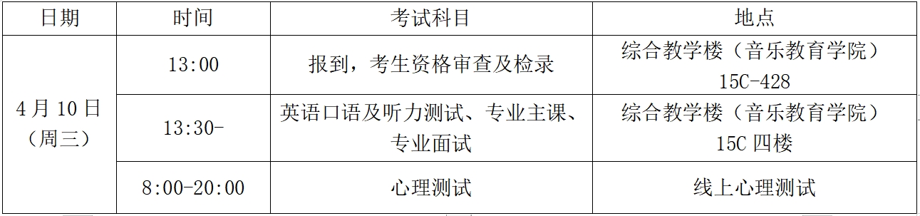 4.全体考生务必准时到达检录处进行检录,超过规定时间15分钟的迟到考生均不允许进入各考场。我校不提供伴奏,考生自备钢琴伴奏或其他乐器伴奏的,伴奏人员与考生同时进场检录,检录要求与考生一致,迟到15分钟不允许进入考场。