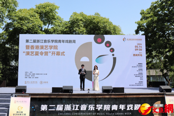 14日上午,浙江音樂學院青年戲劇周暨香港演藝學院「演藝夏令營」開幕儀式在浙江杭州的西子湖畔啟動。40餘名香港演藝學院的師生為「戲」而來,在戲劇周期間,將與浙江音樂學院的師生在「越劇」與「粵劇」大師工作坊裏,交叉學習交流,切磋技藝,並進行匯報演出。