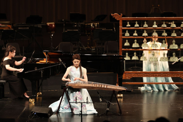 原创新作《瓷韵东方》通过筝和瓷月的结合,描绘了中国瓷器的文化魅力和诗画浙江的东方美学;琵琶协奏曲《云想花想》、古筝协奏曲《望云赋》等曲目,为观众呈现了中国音乐的诗意与追思。由作曲家唐建平创作的琵琶协奏曲《春秋》,气势宏大,内涵深刻,融合琵琶与交响,抒发了对古老、辉煌文化成就的敬意。音乐会尾声是谭盾的《琵琶与古筝双重协奏曲》。