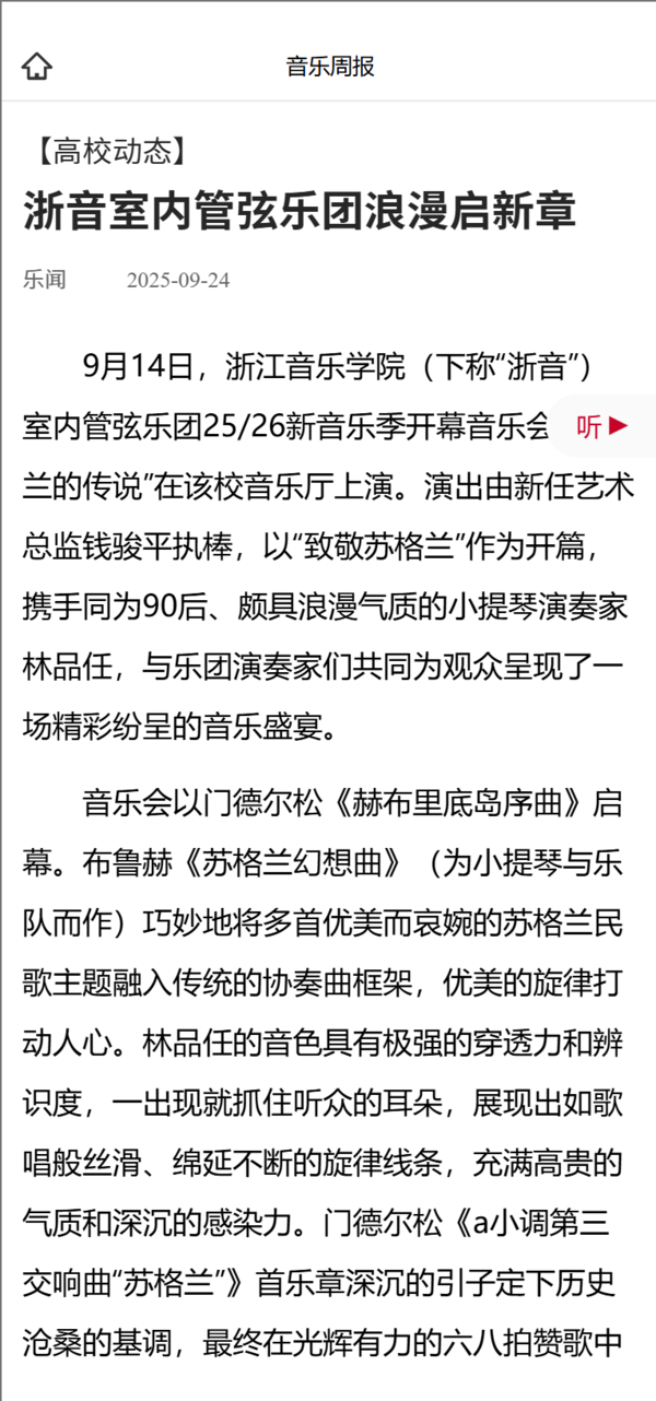 音乐周报:浙音室内管弦乐团浪漫启新章