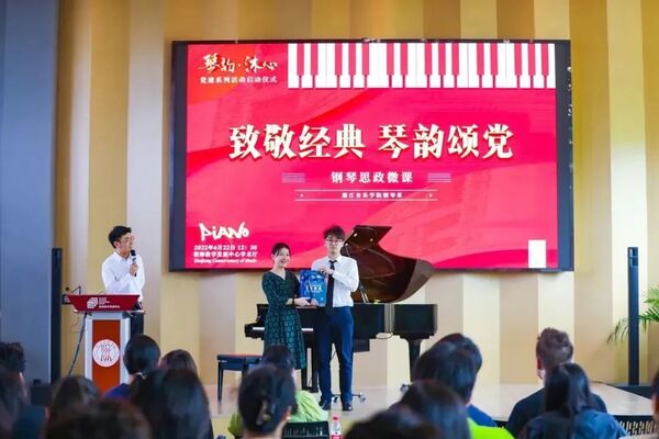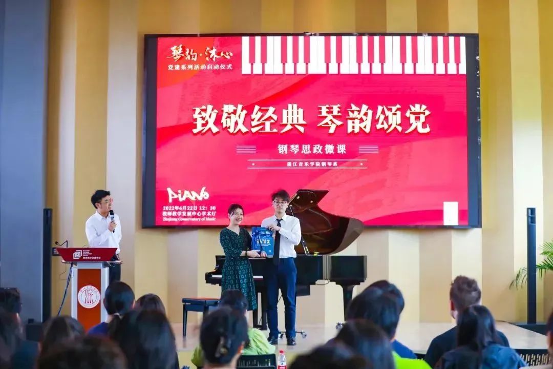 在中国共产党成立101周年、浙江省第十五次党代会召开之际,由钢琴系党总支主办的“琴韵·沐心”党建系列活动启动仪式在教师教学发展中心学术厅举行。学院党委副书记王均寅,副院长杨九华,党委委员、宣传部部长、教师工作部部长李俊,组织部、宣传部、教务处、学生工作部、研究生工作部,以及部分院系党组织负责人、钢琴系党政领导班子及全体师生出席了本次活动。学院领导和钢琴系党政班子为“琴韵·沐心”党建系列活动揭幕。