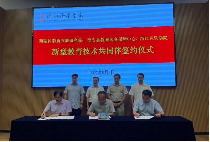 8月3日,山区26县新型教育技术共同体合作框架协议签约仪式在学院举办。省教育技术中心、杭州市教育发展服务中心、西湖区教育局、西湖区教育发展研究院、淳安县教育局有关人员,以及14所结对学校校长、音乐教师代表出席签约仪式。学院副院长、党委委员张伟波,社会合作中心、音乐教育学院、音乐工程系、信息技术中心相关人员出席会议。会议由信息技术中心负责人主持。