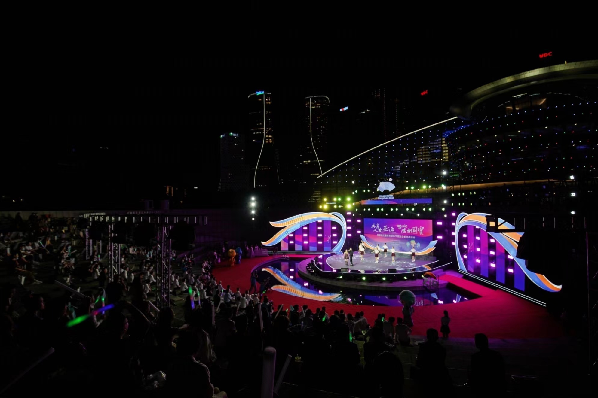 钱塘潮水奔流不息,新时代“弄潮儿”勇敢无畏。此次活动的舞台造型为一艘“航船”,由学院资产经营公司设计,寓意着广大青年借着时代发展的东风,在这座亚运之城乘风破浪、扬帆远航。活动在流行音乐系和附属音乐学院演绎的亚运推广曲《@未来》中拉开帷幕,随后一首首融入亚运、青春、国贸元素的原创曲目相继登台亮相,在观众的阵阵掌声与喝彩中,展现亚运蓄势出发的坚定信念,唱响青年憧憬美好明天的心声。