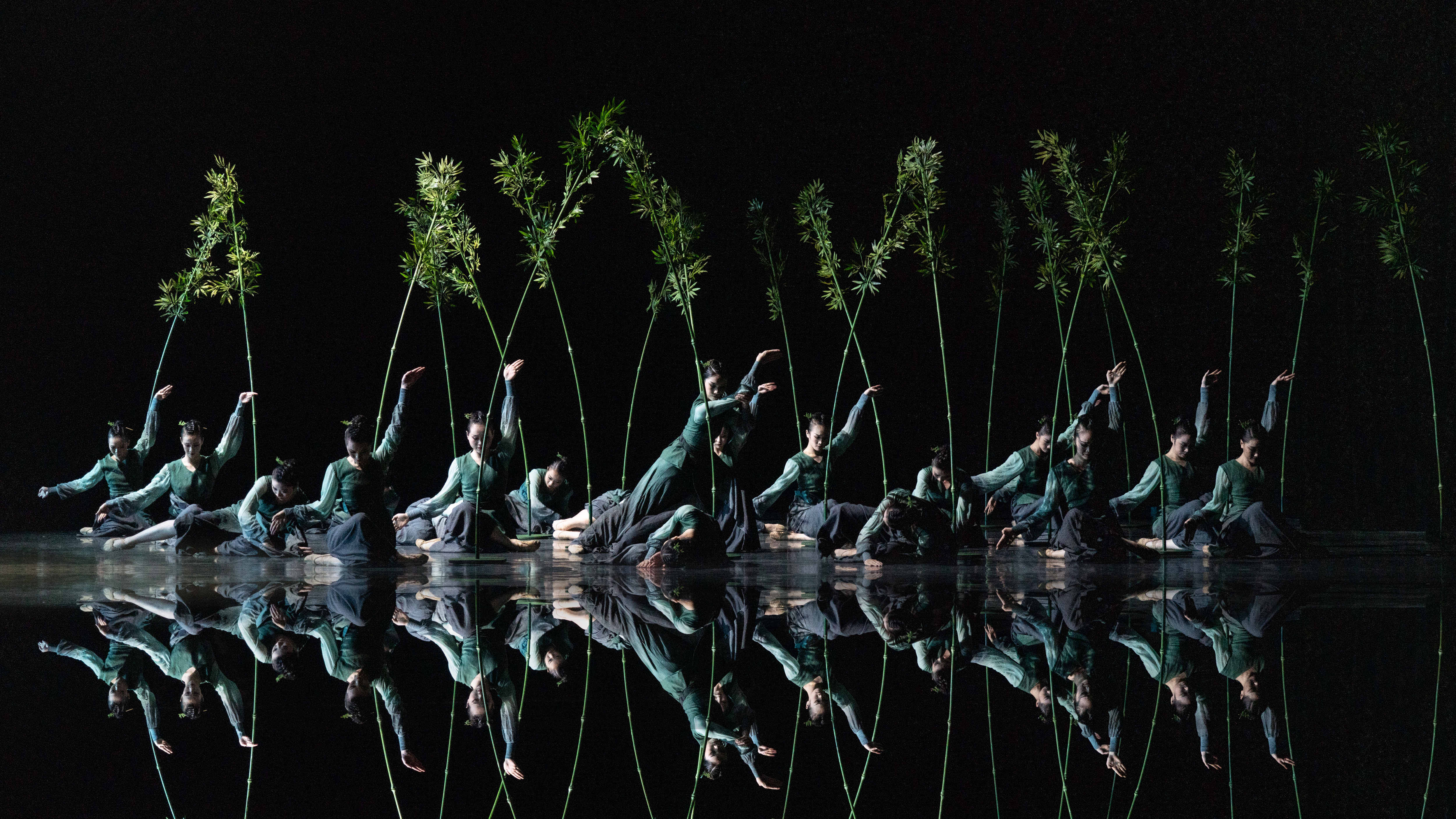 此次作品改编自剧场版舞蹈作品《竹石》,“竹石风骨、於兹犹存;高山仰止,源远流长”,作品取自郑板桥《竹石》一诗中所描绘的破石而生的劲竹形象,同时也借竹喻人,传递出壁立千仞的刚强与隐忍独立的风骨。作品选取汉唐古典舞的典型动作元素,以动作塑造形象,以动势描绘意境,使汉唐风骨与竹石意象相偕同构,表达了对顽强生命力的赞颂和对高质量生命流程的憧憬。在乌镇戏剧节中,演员走下舞台,置身于木心美术馆水台之上,给现场观众带去一场沉浸式互动演出的同时,也引导其对人与人、人与自然的关系展开进一步思考。