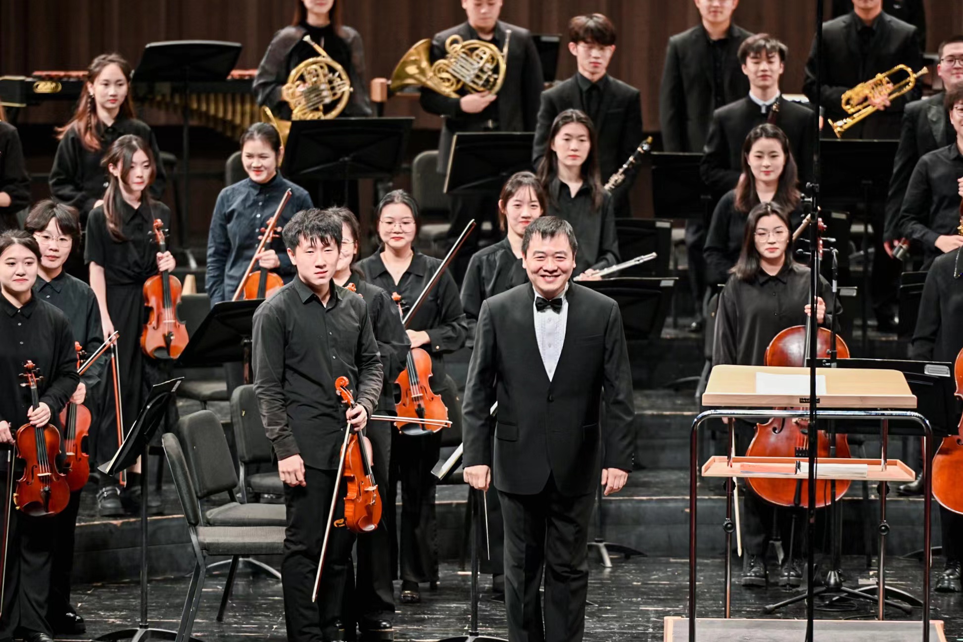 一曲终了,掌声雷鸣,张艺表示:“通过一次次排练与演出实践,可以看到同学们正在快速进步,他们的变化令我感动。这场音乐会不仅展示了学院的高水平师资,也使我感受到正在成长的乐队学院的勃勃生机。期待‘未完成’之旅迎来下次的成熟与精彩。”