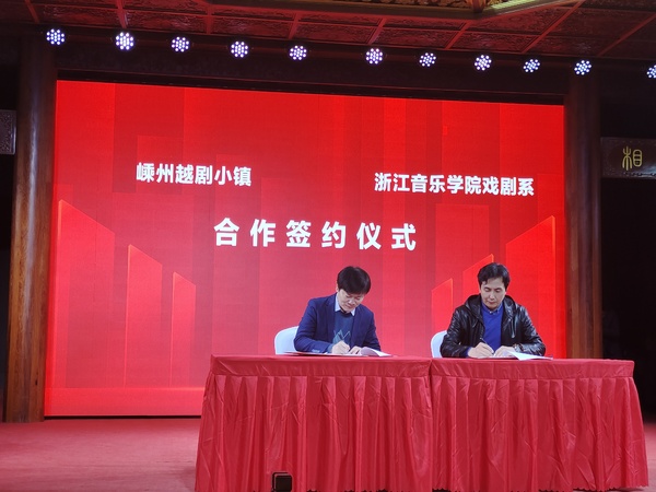 近日,戏剧系与浙江嵊州越剧小镇共建实践基地的签约授牌仪式在顺利举行。戏剧系总支书记、副主任安怡一行,嵊州市文化广电旅游局党委委员、副局长施棋明,以及越剧小镇总经理杨岳、嵊州越剧艺术学校相关负责人参加。安怡和杨岳签订了共建实践基地协议并为基地授牌。
