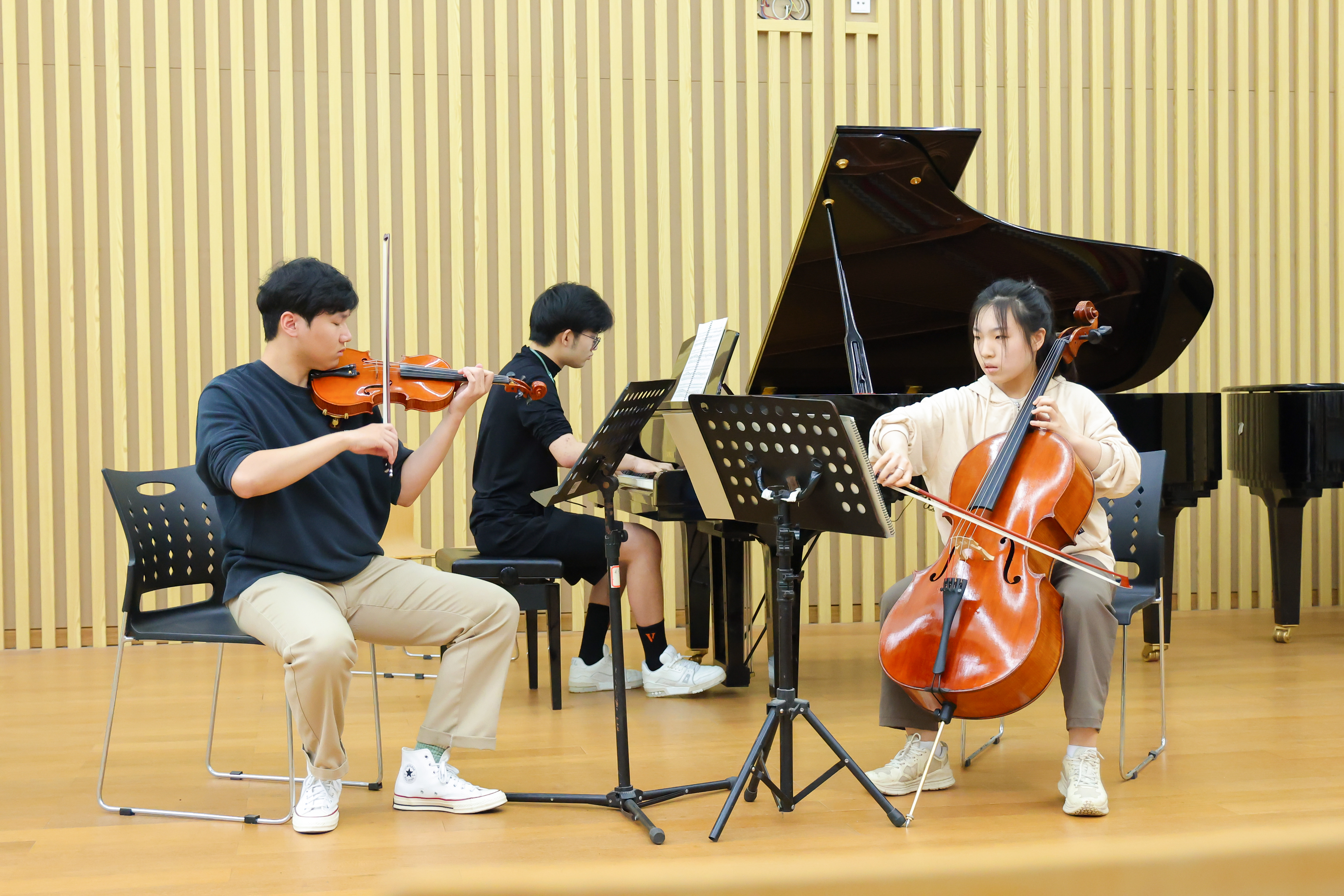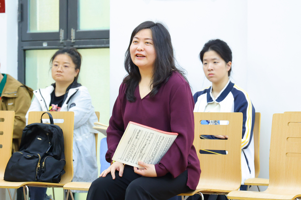 大师班上,室内乐学院的两组学生分别演奏了贝多芬的《降E大调钢琴三重奏》和《D大调钢琴三重奏“幽灵”》,并得到了张薇聪的指点。她对两首作品进行了生动细致的讲解,并对钢琴与弦乐音色的融合提出了思考方法和解决办法,例如,钢琴如何尽可能地模仿弦乐连奏、弦乐怎样演奏出钢琴的颗粒性等,并强调了演奏者应通过音色的需求,合理运用钢琴踏板等。此外,她还讲解了区分中、低声部音乐性格的重要性。在张薇聪的悉心指导下,学生们对室内乐演奏艺术有了更深入的理解和思考,对于作品风格的把控,以及音乐层次的处理也表现得更为精准恰当。