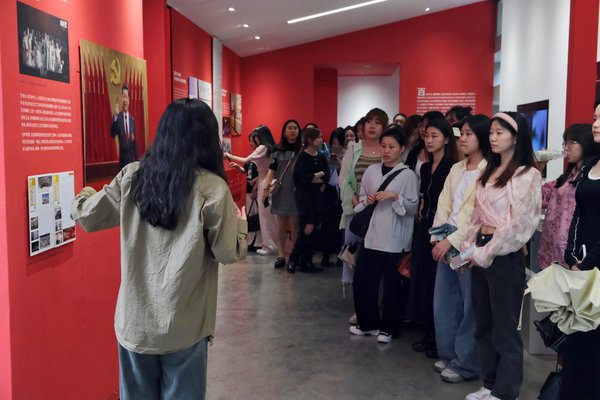 青年教师徐施易结合教学内容,带领学生重温了习近平总书记在文艺工作座谈会上的重要讲话精神,引导青年学生进一步增进对“实现中华民族伟大复兴需要中华文化繁荣兴盛”“坚持以人民为中心的创作导向”等重大论断的理解。中国美术学院马克思主义学院青年教师李思琪以编年图说的历史脉络介绍“国美党建之路——党建文化长廊”,详细讲述了中国美术学院扎根中国大地办教育,肩负使命“为艺术战”的历程;青年教师陈珍导学了“中国共产党人精神谱系”美术作品展,结合《新中国从这里走来》《启航——中国共产党成立》等艺术精品,以伟大建党精神为主题,将创作与育人、艺术传承与精神传递融合为一,让同学们直观感受到新时代伟大奋斗铸就的文艺辉煌。师生们还共同观摩了民艺博物馆“信史与国工——中国陶瓷绘画特展”,感受了传统民间技艺与当代创作形态的传承与创新,坚定了艺术理想,增强了文化自信。