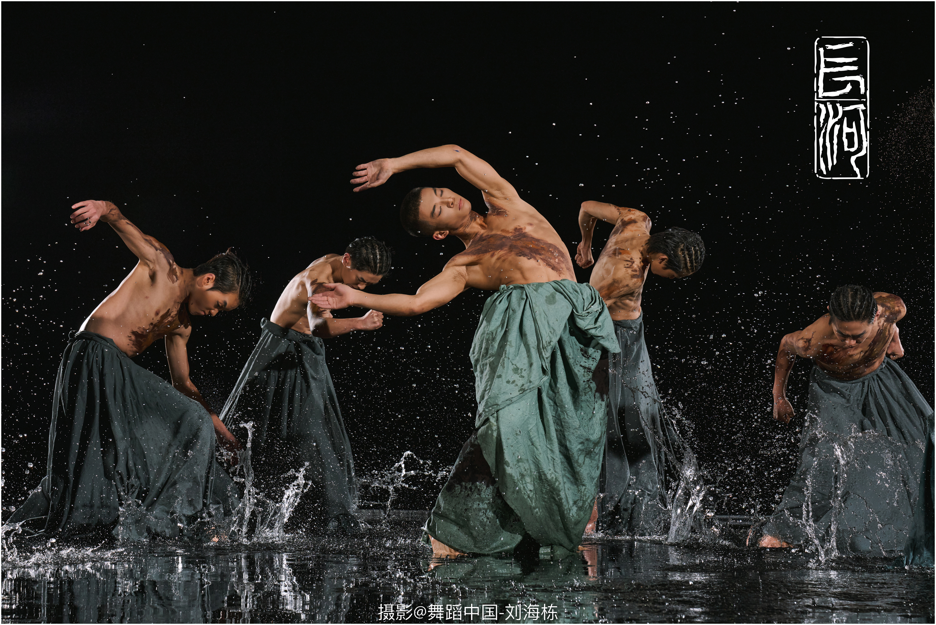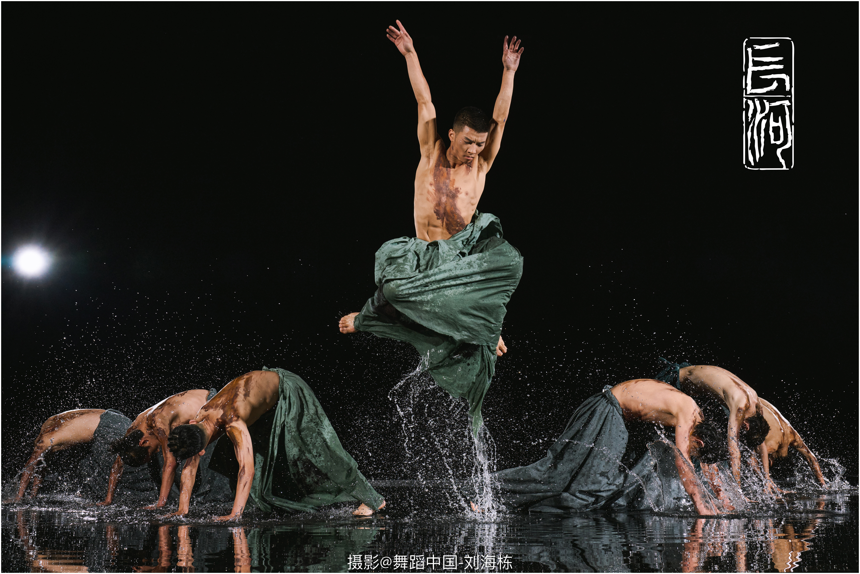 三是聚焦融合创新。创作团队教师积极发扬共产党人开拓创新精神,一改传统的舞剧叙事结构,以身体模拟形态,以形态进行言说。这一理念是相对抽象的,学生也是不容易接受的。为了解决排练中的这一问题,编导首先需要抓住的是中国人特有的身体律动,这种律动方式需要去中华文明土地上的各种民间舞蹈中找寻。《长河》没有选择以某一种民间舞蹈为出发点进行创作,而是在观测了各个民间舞蹈的律动之后,创新出一种新的舞蹈语汇,它具有中国性,也具有创新性。如此,学生在训练的过程中培养出符合中国气质与中国韵味的身体形态。以“淤泥”为例,它以极其慢速的动作变化模拟淤泥阻塞的状态,沉闷的气压让人窒息。生命的衰老亦是如此,拖着沉重的步伐,步履维艰,却依然向前。
