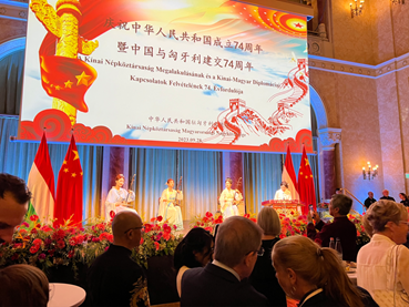 9月28日,中国驻匈牙利使馆举行招待会,隆重庆祝中华人民共和国成立74周年暨中匈建交74周年。驻匈牙利大使龚韬,匈政府代表、外长西雅尔多出席并致辞。匈国会常务副主席玛特劳伊、副主席劳多尔曹伊、最高法院副院长科瓦奇等匈牙利政要和匈总统府、政府、国会、政党、军警、工商、文教、媒体等各界友好人士,各国驻匈使节及在匈中资机构、华侨华人、留学生代表逾600人出席。