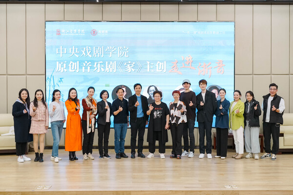 第十八届中国戏剧节在杭州举办,中央戏剧学院原创音乐剧《家》在浙音大剧院演出,为帮助同学们更为深入地了解《家》这部原创音乐剧,戏剧系邀请该剧主创:中央戏剧学院音乐剧系教授、博士研究导师刘红梅教授;作曲:中央戏剧学院音乐剧系主任、硕士研究生导师戴劲松教授;编剧、作词:中央戏剧学院戏剧文学系教授、博士研究生导师陈小玲教授;舞台设计:中央戏剧学院舞台美术系教授、博士研究生导师边文彤教授;主演:郑欣闻笛副教授,金圣权、田依凡老师一行七人到场,戏剧系音乐剧专业与影视表演专业的百余名同学们与部分老师参加此次活动。