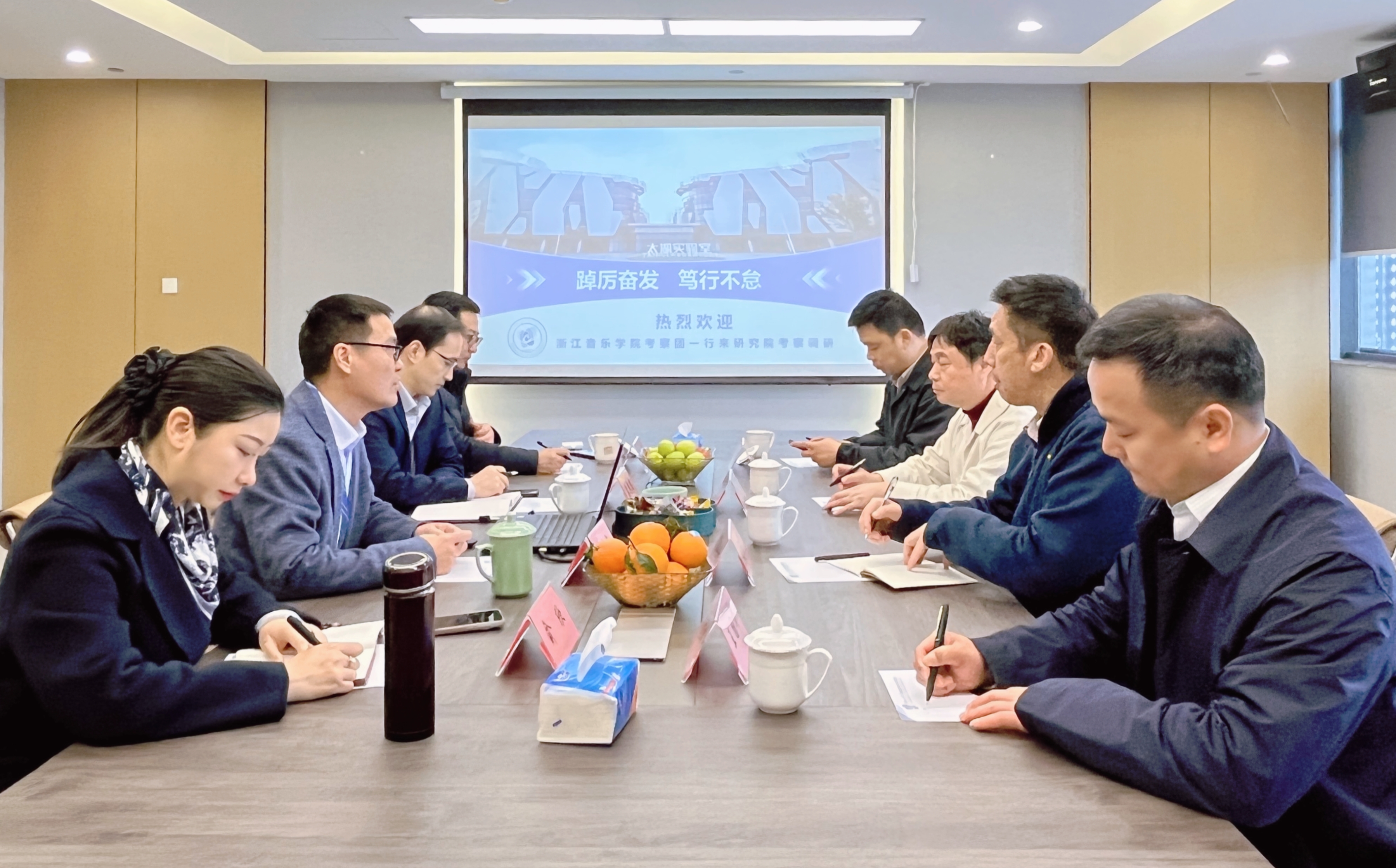 学校一行先后参观了研究院的数字化评价可视化验证平台、科技展厅和工业互联网等研发中心,深入了解研究院在科技推广、企业孵化、项目引进等方面的工作成果。随后,双方在会议室进行了座谈,浙工大湖州数字经济技术研究院负责人就研究院现状和发展规划作了汇报。双方围绕数字音乐领域,就党建联建、人才培养、项目合作、毕业生就业等工作进行了探讨和交流。