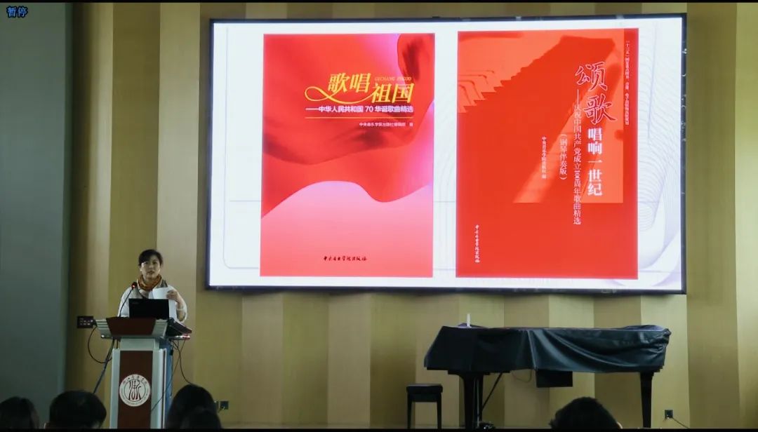 邢媛媛以中央音乐学院出版社为例,对新时代美育视域下音乐高校教材建设与出版规划进行了介绍。讲座分两个板块,一是中央音乐学院出版社的音乐教育出版实践与思考。邢媛媛就学校音乐教育教材建设、教育扶贫助力美育教育、打造精品专业教材、全民音乐素养普及进行了分析,并就出版社承担“以美育人”责任、服务“立德树人”任务、创新“电子教材”建设等三大任务作了解读。二是图书出版流程与编辑规范。邢媛媛以问题为导向,从高校、出版社、作者等三个维度,对有组织的教材建设、收稿发稿基本原则、乐谱与图书编写基本规范、出版周期与经费要求进行了详细阐释。讲座结束后,邢媛媛与现场教师进行了交流,并对老师们在教材建设与出版过程中碰到的问题进行解答。