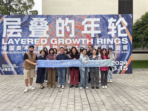 师生校友一行来到全山石艺术中心,参观考察中国美术学院“世界树—层叠的年轮”毕业展。展览汇聚了来自中国美院雕塑与公共艺术学院的167位毕业生的创意之作,涉及雕塑设计、数字空间、声音装置、生态创新等领域,展现了当代青年艺术家对时代精神的独特解读与艺术语言的创新表达。