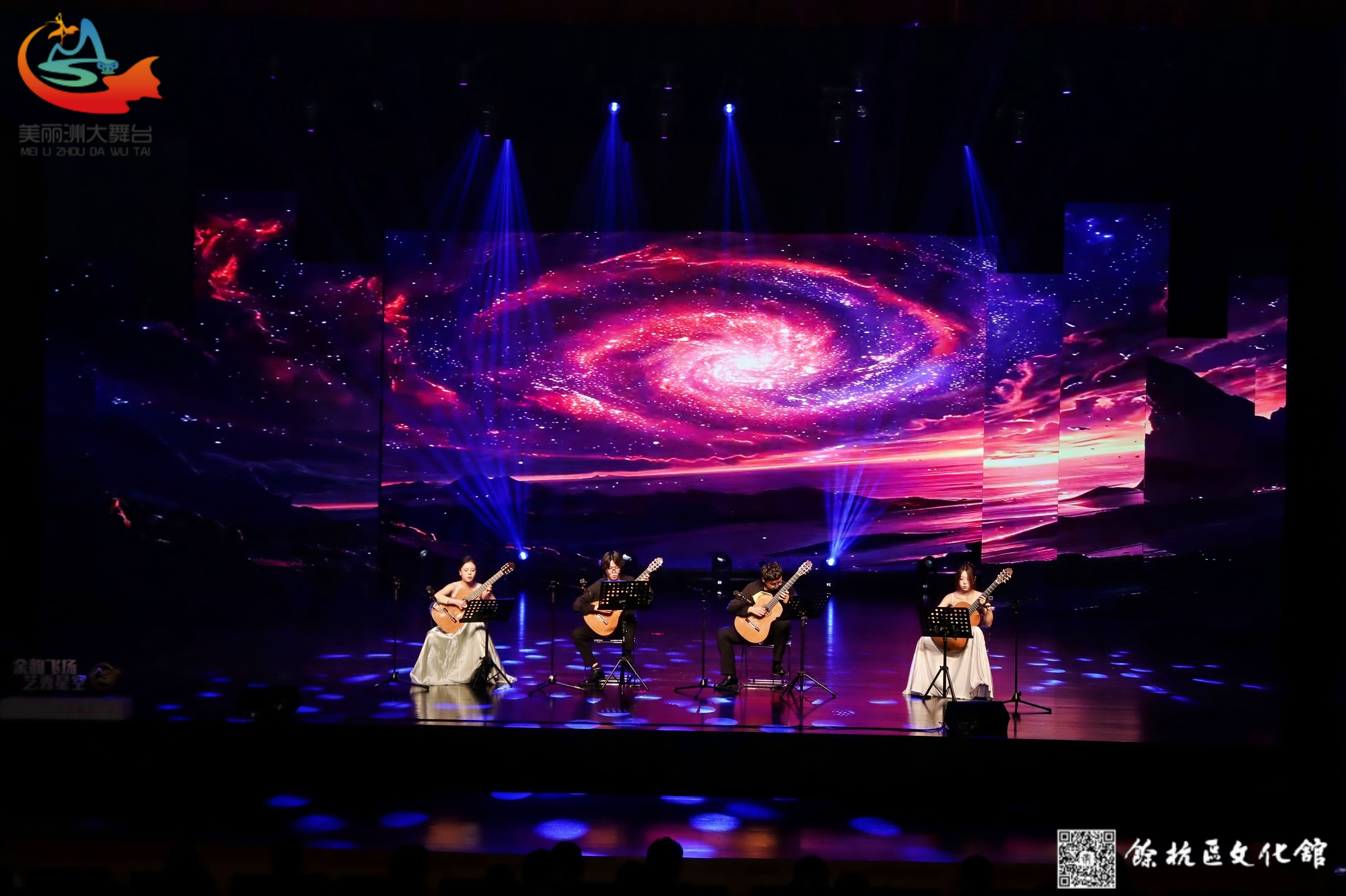 在习近平总书记文艺工作座谈会讲话十周年之际,“文艺轻骑兵”走进余杭,助力文艺事业繁荣发展。10月13日晚,杭州市余杭区文化地标——余杭苕溪大剧院热闹非凡,掌声雷动。由音乐教育学院、声乐歌剧系、流行音乐系、管弦系、戏剧系、舞蹈学院30余名同学组成的“文艺轻骑兵”队伍走进苕溪大剧院,成功开展了“浙音轻骑·绘梦余杭”庆祝中华人民共和国成立75周年暨余杭区“美丽洲”大舞台系列展演活动。本次活动完全由“文艺轻骑兵”自编、自导、自演,通过演唱、器乐、舞蹈等表演形式,共同助力余杭新中心建设,推进全民精神富有阔步向前。