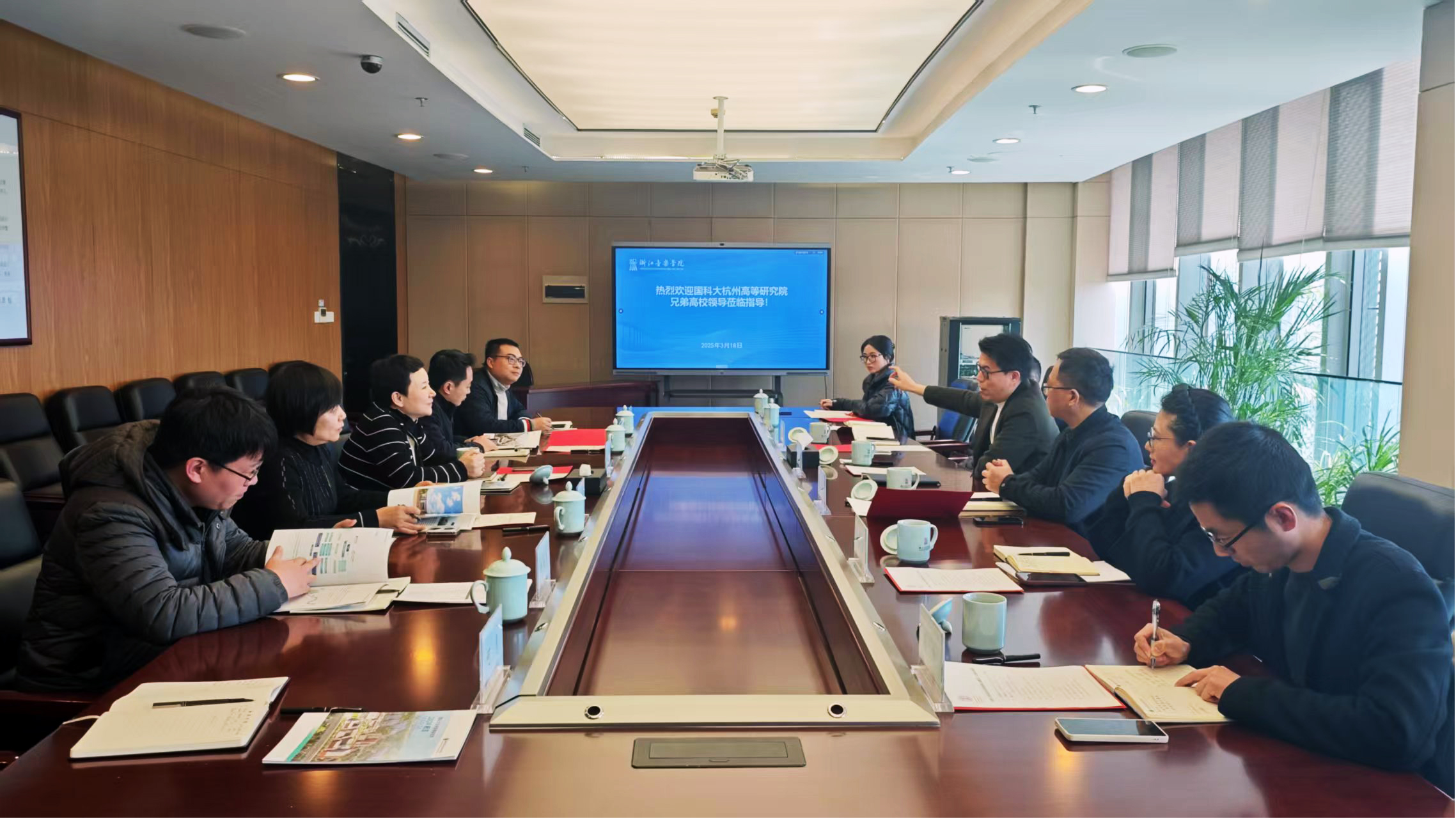 3月18日,国科大杭州高等研究院副院长陶立一行来校调研交流。学校副院长、党委委员奚丽萍,资产与设备管理处、后勤与安全保卫处相关负责人等陪同调研。
