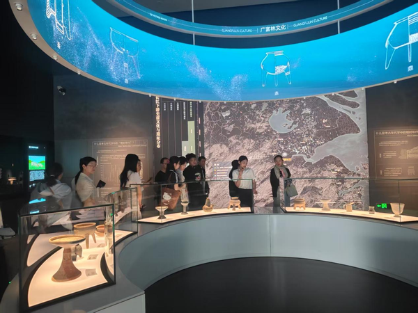在实践教学环节,组织学员赴之江文化中心、玉架山考古博物馆开展沉浸式研学。在之江文化中心,学员系统学习数字化展陈技术、智慧场馆管理系统及文化大数据应用;在玉架山考古博物馆,通过遗址保护与文旅开发融合案例,探讨文化遗产活态传承的创新模式。一位负责文保的学员感慨:“玉架山等现场学习给我们的实际工作带来很多启发,为文物的保护和发展实现双赢提供了生动案例。”