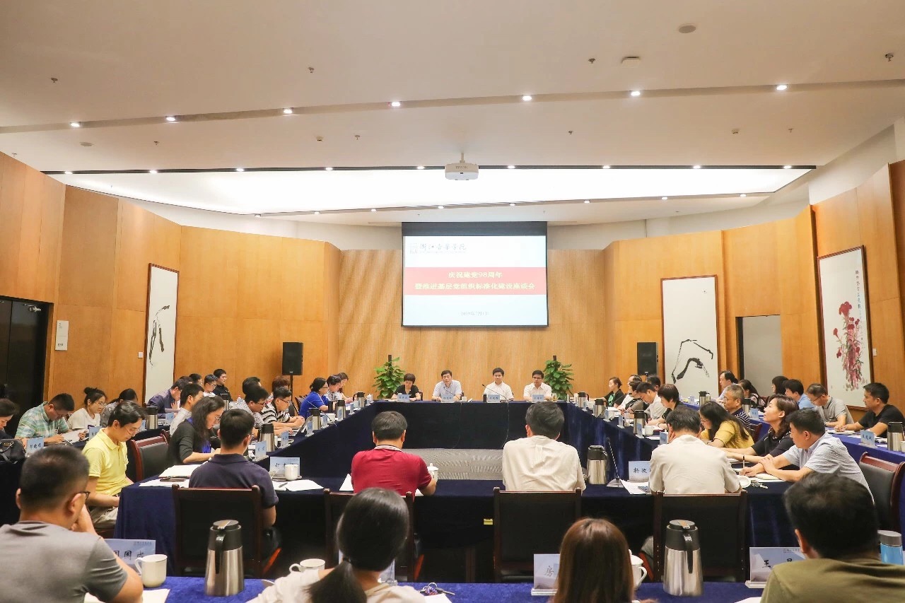为热烈庆祝中国共产党建党98周年,深入学习习近平新时代中国特色社会主义思想,贯彻落实省教育厅党委基层党组织建设“两个标准”,7月1日下午,学院召开庆祝建党98周年暨推进基层党组织标准化建设座谈会。学院领导胡建新、张建国、贾秀英、方培新,各党群部门负责人、二级党组织书记,全体基层党支部书记、组织员等参加座谈。