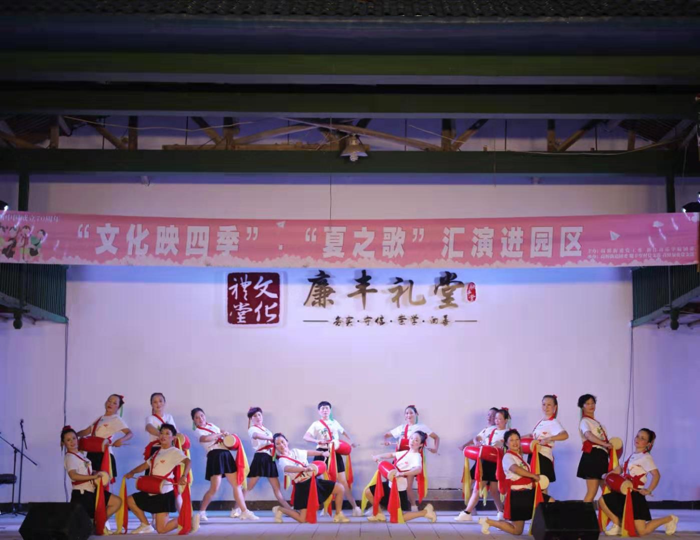 最后,大家一同观看了由实践团师生与当地儿童共同排演的“文化映四季”•“夏之歌”主题实践汇报演出。整场演出形式丰富、表演水平精湛,赢得了当地群众的阵阵喝彩。
