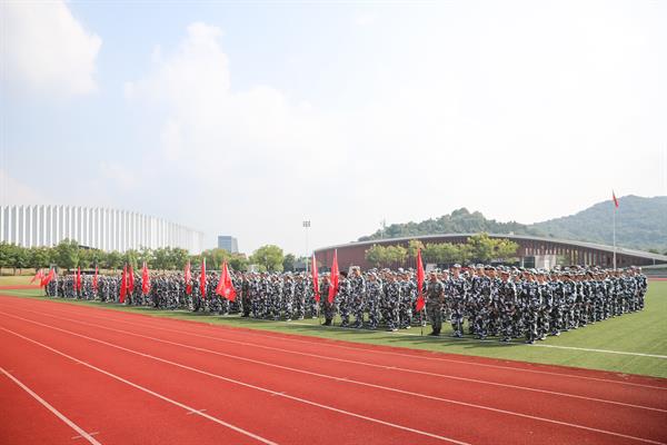 9月17日上午,我院2019级学生军训动员大会在田径场隆重举行。学院党委副书记贾秀英,副院长杨九华,中国人民解放军驻杭某部队上尉、军训营营长吴龙,相关部门负责人,各系学生工作负责人,全体辅导员、新生班主任及承训部队教官出席。