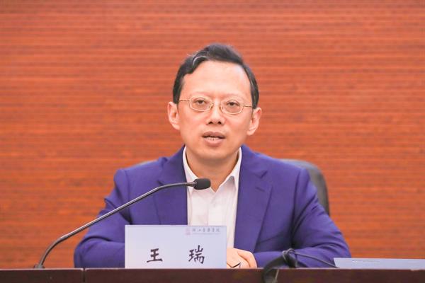 学院院长、党委副书记王瑞出席会议并致辞。他首先代表学院对本届新作品交流会的召开表示热烈祝贺,对来自全国各大音乐院校的专家和学者表示热烈欢迎。王瑞充分肯定了举办“全国中青年作曲家新作品交流会”的重要意义。他指出,作曲学科建设是音乐院校建设的重中之重,是推动音乐艺术发展的重要力量。一直以来,浙音在学科建设整体布局结构中将作曲与作曲技术理论学科的建设与发展作为重中之重,积极稳步推进,取得丰硕成果。希望本届新作品交流会能涌现更多更优秀的创作人才,推出更多更优秀的原创精品,为进一步促进中国作曲学科建设、促进音乐创作发展凝聚更多新思想、新共识、新方法和新成果,为大力推动中国音乐艺术事业和文化建设作出更大贡献。