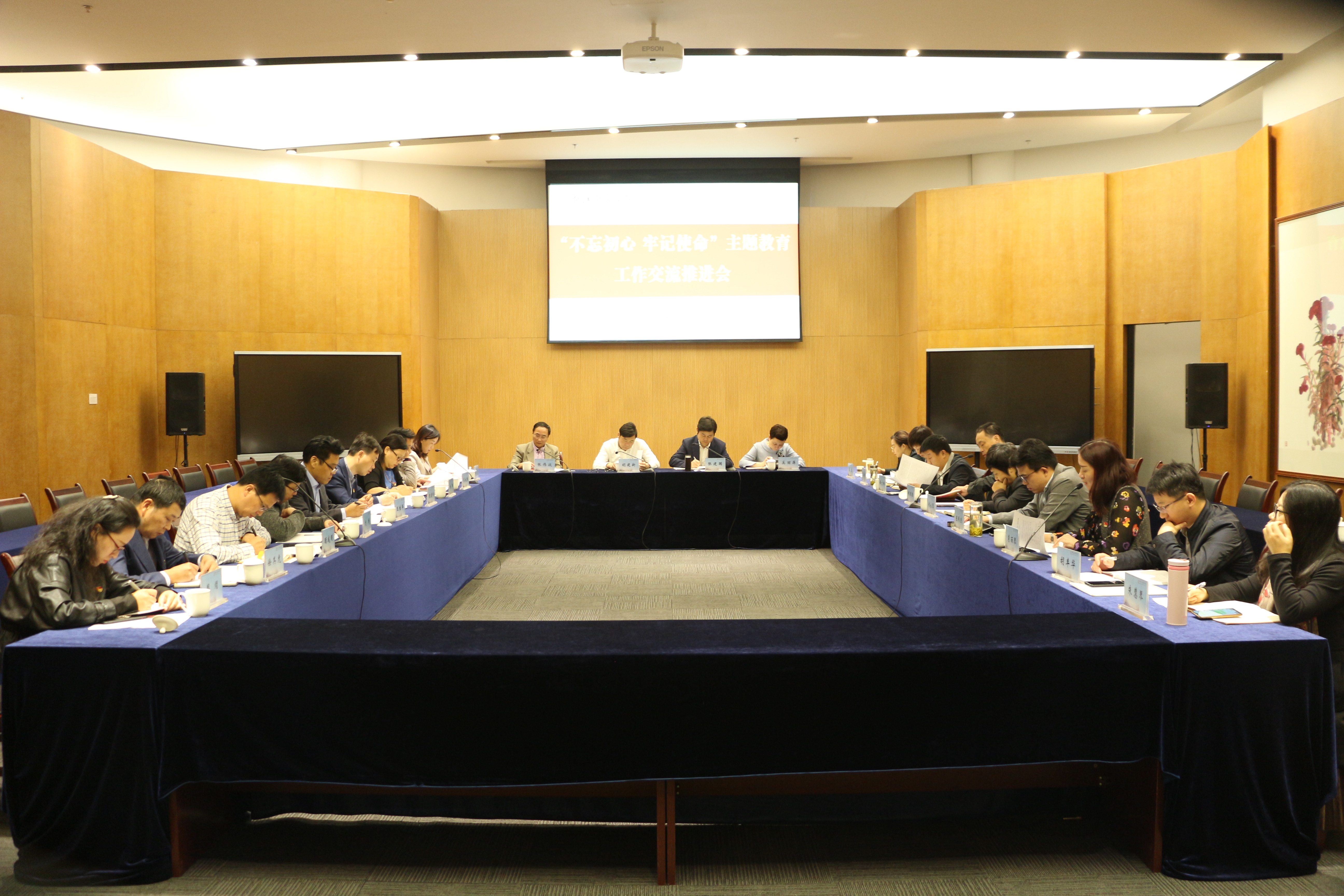 10月23日上午,学院“不忘初心、牢记使命”主题教育工作交流推进会在103会议室召开。学院党委书记、主题教育领导小组组长胡建新,主题教育领导小组办公室各组组长、各二级党组织负责人、中层干部集中学习研讨小组组长参会。会议由党委副书记、副院长、主题教育领导小组副组长张建国主持。