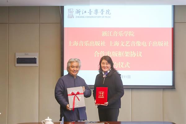 签约仪式上,王瑞代表学院对上海音乐出版社、上海文艺音像电子出版社领导一行的到来表示热烈欢迎。他指出,上海音乐出版社作为全国创办最早的专业类出版机构之一,拥有较强的专业策划与发行能力,以及庞大的国内外合作网络与艺术家资源,推出了一大批有水准、有内涵、有影响、有前瞻性的作品。浙音当前已进入全面推进内涵建设时期,此次三方合作必将推进校企产教精准对接,推动学院学科建设、科研创作与出版事业健康快速可持续发展,加快助推学科资源、人才资源、艺术资源向社会服务资源转化,通过强强联合,构建产学研紧密合作的新型战略关系,共同推动浙江乃至全国音乐高等教育事业与音乐文化产业的新发展。