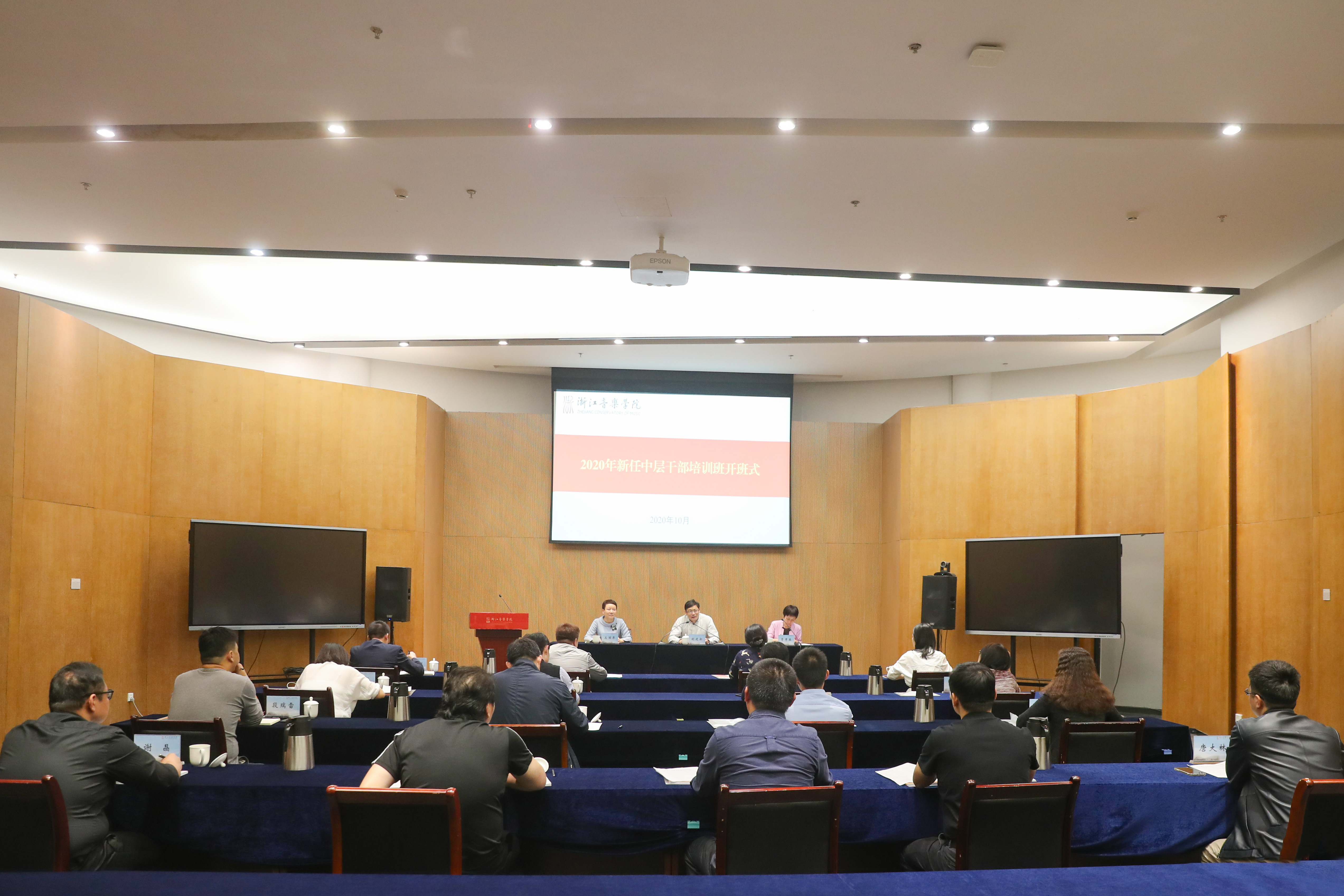 10月10日晚,学校新任中层干部培训班开班仪式在行政楼103会议室举行。校党委书记胡建新出席开班式并讲授第一课,会议由校党委副书记贾秀英主持。