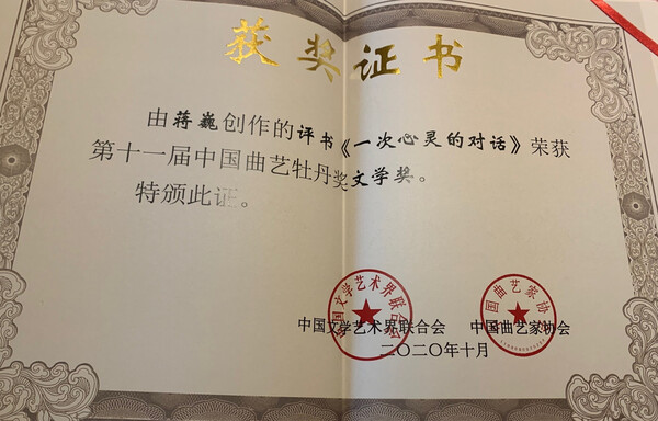10月15日,第十一届中国曲艺牡丹奖颁奖仪式在江苏苏州举行,我校教师蒋巍创作的评书《一次心灵的对话》,荣获第十一届中国曲艺牡丹奖文学奖。冯小娟表演的杭州摊簧《淑英救弟》,荣获第十一届中国曲艺牡丹奖节目奖。“中国曲艺牡丹奖”是由中国文联和中国曲艺家协会共同举办的全国性曲艺艺术专业奖项,是我国曲艺界的最高奖项。本届中国曲艺牡丹奖共评选出节目奖5个、表演奖6个、文学奖4个和新人奖5个。