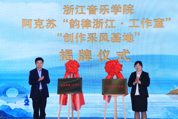 10月20日上午,由浙江省文化和旅游厅联合中共阿克苏地委、阿克苏地区行署、浙江省援疆指挥部共同举办的“浙阿文化交流合作”工程启动仪式在新疆阿克苏地区文博院隆重举行。学校党委副书记、副院长张建国带队参加,与阿克苏地区文化体育广播电视和旅游局党组书记王新春共同签署战略合作共建协议,并授牌阿克苏地区塔里木歌舞团 “韵律浙疆工作室”“创作采风基地”。