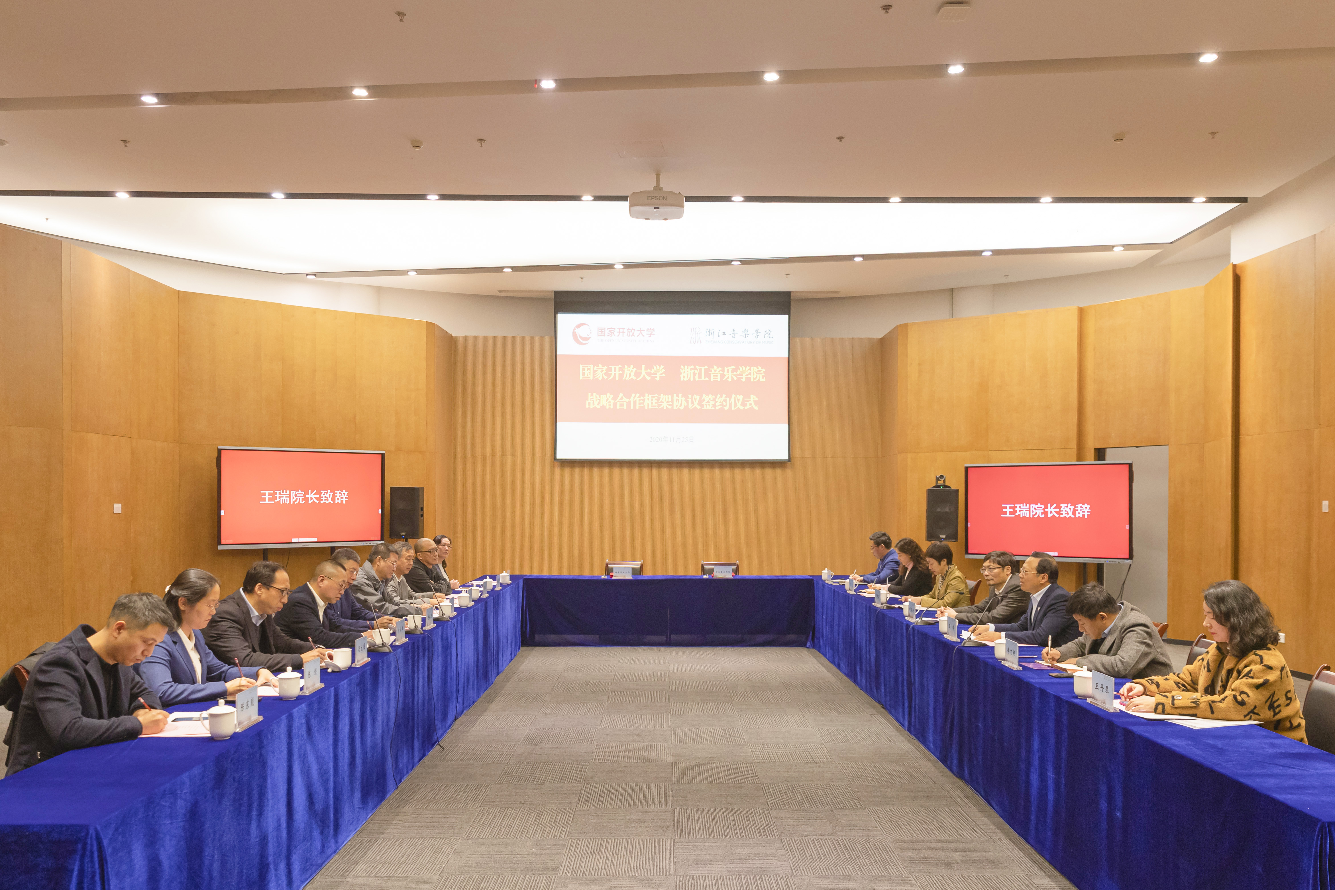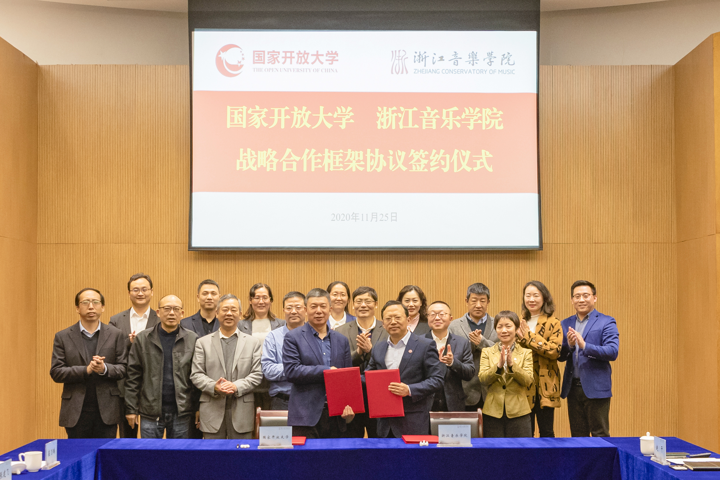 11月25日下午,学校与国家开放大学战略合作框架协议签约仪式在行政楼103会议室举行。党委书记胡建新、院长王瑞、党委副书记贾秀英与国家开放大学党委书记、校长荆德刚,副校长杨孝堂出席签约仪式,两所学校相关部门负责人参加仪式。