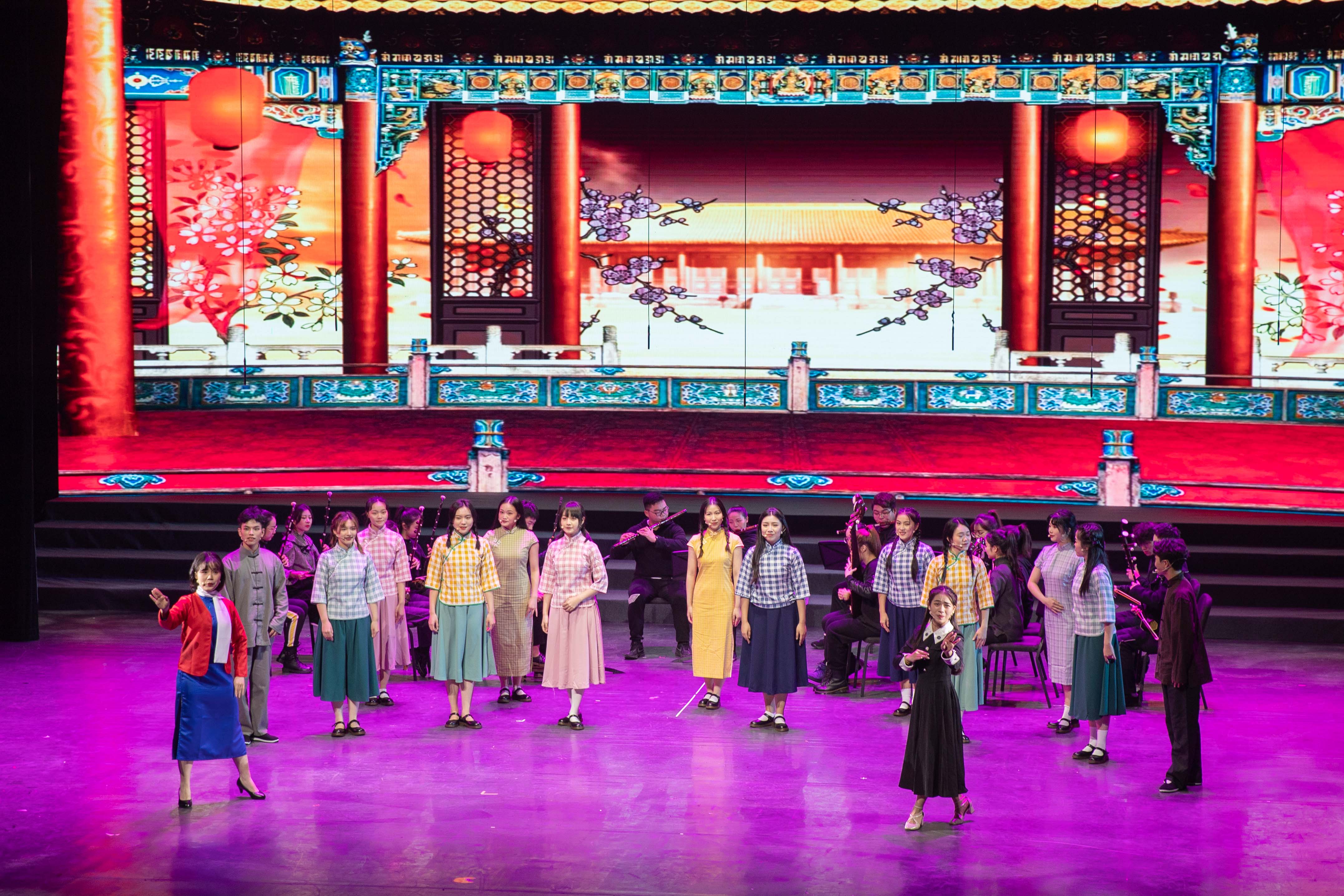 现场,同学们结合自身专业,用艺术的形式展现在思想政治理论课学习中的所思、所感与所获。一曲管乐合奏《钢铁洪流进行曲》拉开了展演的序幕,舞蹈《母亲的摇篮》、歌曲《你好新时代》、越剧小品《红梅赞歌》、舞台剧《英雄儿女》、吹打乐合奏《农家乐》等丰富多彩的节目轮番上演,同学们用炙热的情感和扎实的功底,唱响主旋律、迎接新时代。舞蹈《抗疫.要有光》用身体的语言再现了与病毒殊死搏斗的刻骨经历;流行歌曲联唱《等风雨经过》《绒花》《我爱你中国》用美妙的歌声表白亲爱的祖国;钢琴独奏《快乐的女战士》用黑白琴键描写了女战士们与炊事班长并肩的动人场景;舞台剧《在一起》用音乐剧的形式展现了病毒面前人们的责任与担当;歌曲《我在见证》用原创的方式体现出祖国的进步发展及青年一代的浓浓爱国情怀;芭蕾舞《红色娘子军》选段《万泉河水清又清》让观众回到风云激荡的烽火岁月,感受“娘子军”们义无反顾、勇往直前的战斗精神。展演在合唱《在希望的田野上》圆满结束,嘹亮的歌声在剧场上空久久回荡。