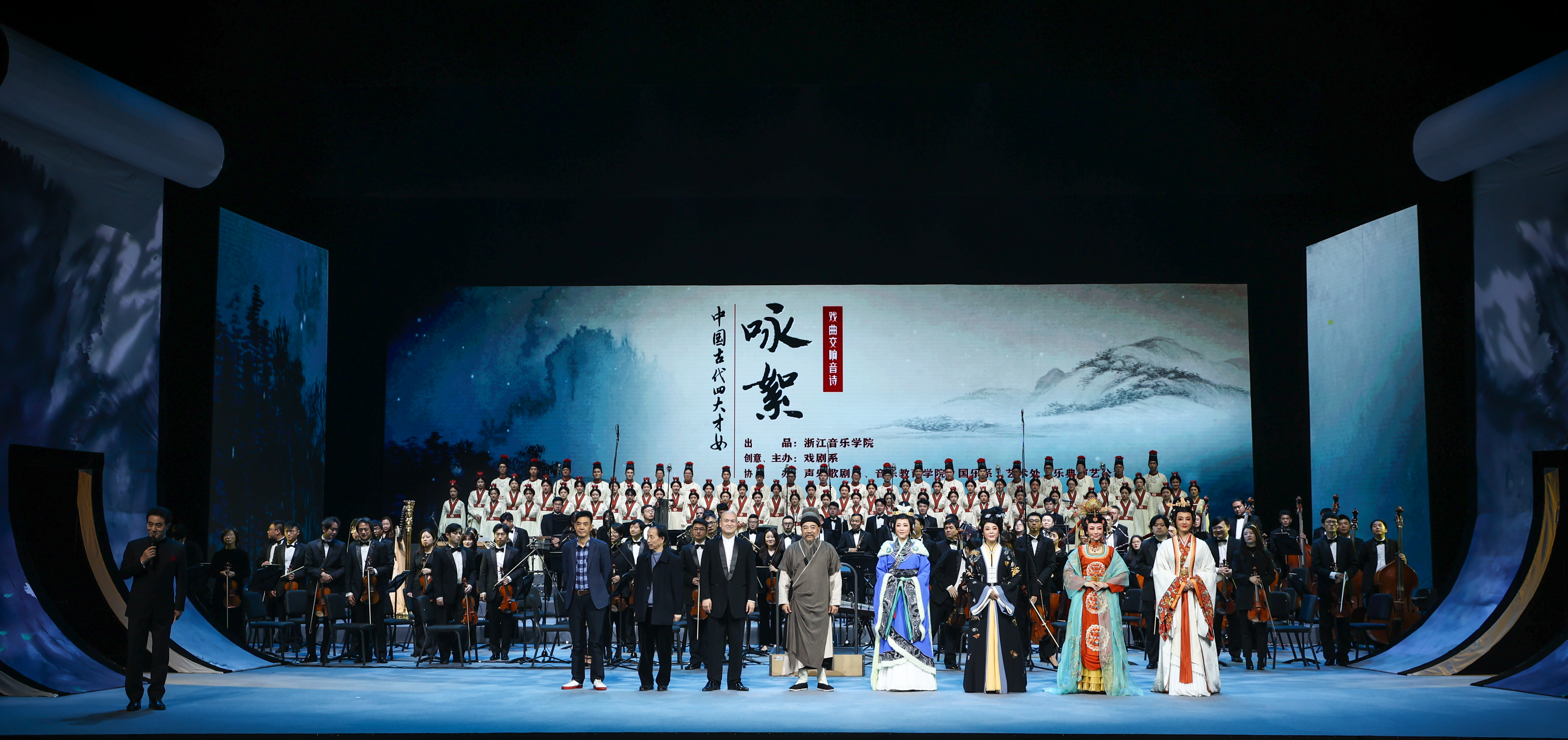 由浙音戏剧系创意主办,联合浙江交响乐团、浙江小百花越剧院和浙音音乐教育学院、声乐歌剧系、国乐系共同演出的大型戏曲交响音诗《咏絮——中国古代四大才女》,于4月19日晚在浙音大剧院上演。