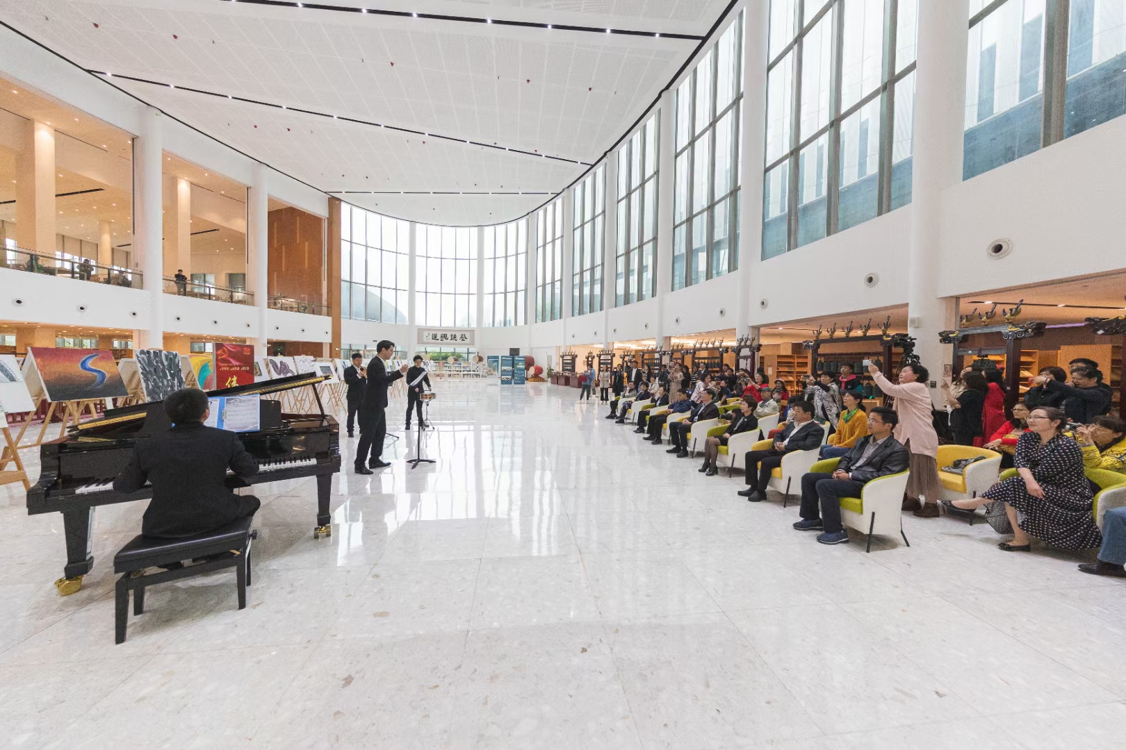 4月23日上午,学院在图书馆大厅举办原创声乐作品《伟大》首发仪式。学院党委书记胡建新,党委副书记贾秀英,党委委员、纪委书记应达伟以及部分二级党组织书记、党支部书记和党员代表等参加仪式。