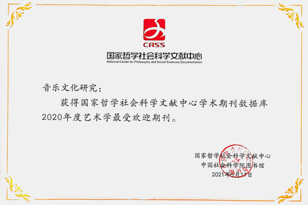 近日,《国家哲学社会科学文献中心学术期刊数据库用户关注度报告(2020年度)》正式发布。学院学术期刊《音乐文化研究》位列全国艺术学期刊关注度排名第一位,并获评艺术学最受欢迎期刊。这是期刊连续两年蝉联关注度排名第一及最受欢迎期刊的好成绩。