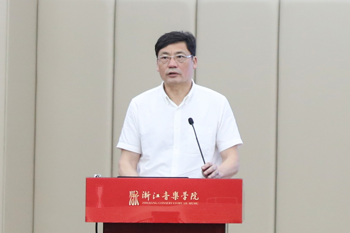 宋慧文代表全国艺术专业学位研究生教育指导委员会秘书处致辞。他解读了全国研究生教育会议精神,介绍了国家音乐艺术有关学位与研究生教育的发展规划、教育培养模式的改革创新等。