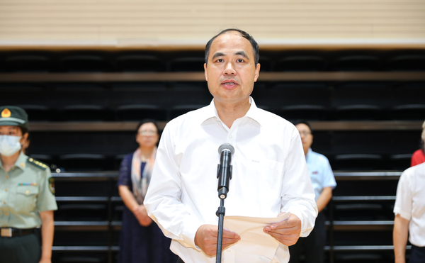 王均寅代表学院向全体2021级新生的到来表示热烈的欢迎,向承担此次军训任务的全体官兵表示衷心的感谢和诚挚的问候。他指出,对大学新生进行军训是高校落实全民国防教育的重要载体和抓手,也是高校立德树人的重要环节。大学生通过军训可以掌握基本军事知识和技能,激发爱国热情,加强国防意识和爱国主义精神,明确使命责任,磨练意志品德,培养坚强毅力,强化组织纪律观念,塑造集体主义精神,养成良好的学习和生活作风。在疫情防控常态化新形势下,在保障绝对安全的前提下,要有序有效组织好军事训练和国防安全教育,做到军训工作和疫情防控工作两手抓、两不误。军训期间,同学们要切实提高自我防护意识,时刻绷紧安全这根弦,做好个人防护。同时,严格要求自己,刻苦磨砺,秉持“事必尽善”校训精神,圆满完成军训任务。最后,他恳请全体教官在军训中讲究方法、科学训练,做到劳逸结合、张弛有度,并把部队的好思想、好传统、好作风传承给新同学。