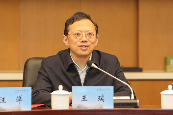 王瑞对文旅部科教司一行的到来表示欢迎和感谢。他说,国家社科基金艺术学项目特别是重大项目,是全国艺术学门类中层次最高、资助力度最大、权威性最强的研究项目。学院高度重视项目申报及管理,举全校之力推进项目的深入系统开展。他要求项目负责人充分发挥科研院所平台的作用,以国家社科基金艺术学项目开展为契机,动员组织全国优秀专家学者,创新产出高质量、原创性的科研成果,在保质保量完成项目的同时,真正推动相关领域的学科创新与科研创新,以优秀的研究成果助推整个艺术学科建设,为坚定文化自信贡献力量。