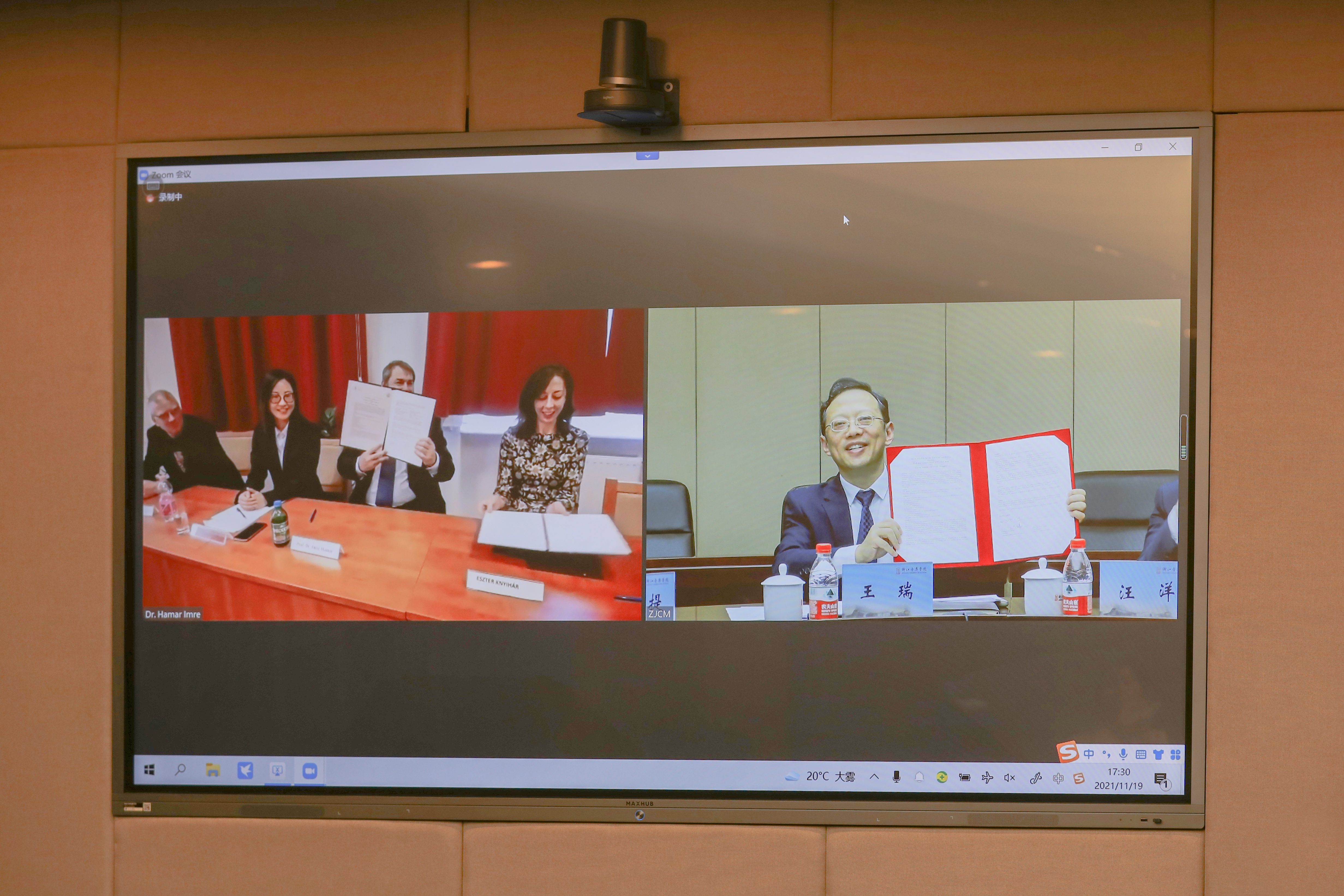 为进一步加强与世界一流院校的交流与合作,11月19日晚,学院与匈牙利罗兰大学举行线上合作洽谈会议,双方签署合作谅解备忘录及交换生协议,并就下一步合作内容进行洽谈交流。院长王瑞、副院长汪洋,罗兰大学副校长Prof. Dr. Imre Hamar(郝清新)出席,学院办公室、国际交流合作处以及罗兰大学相关行政和音乐系教学部门负责人参会。