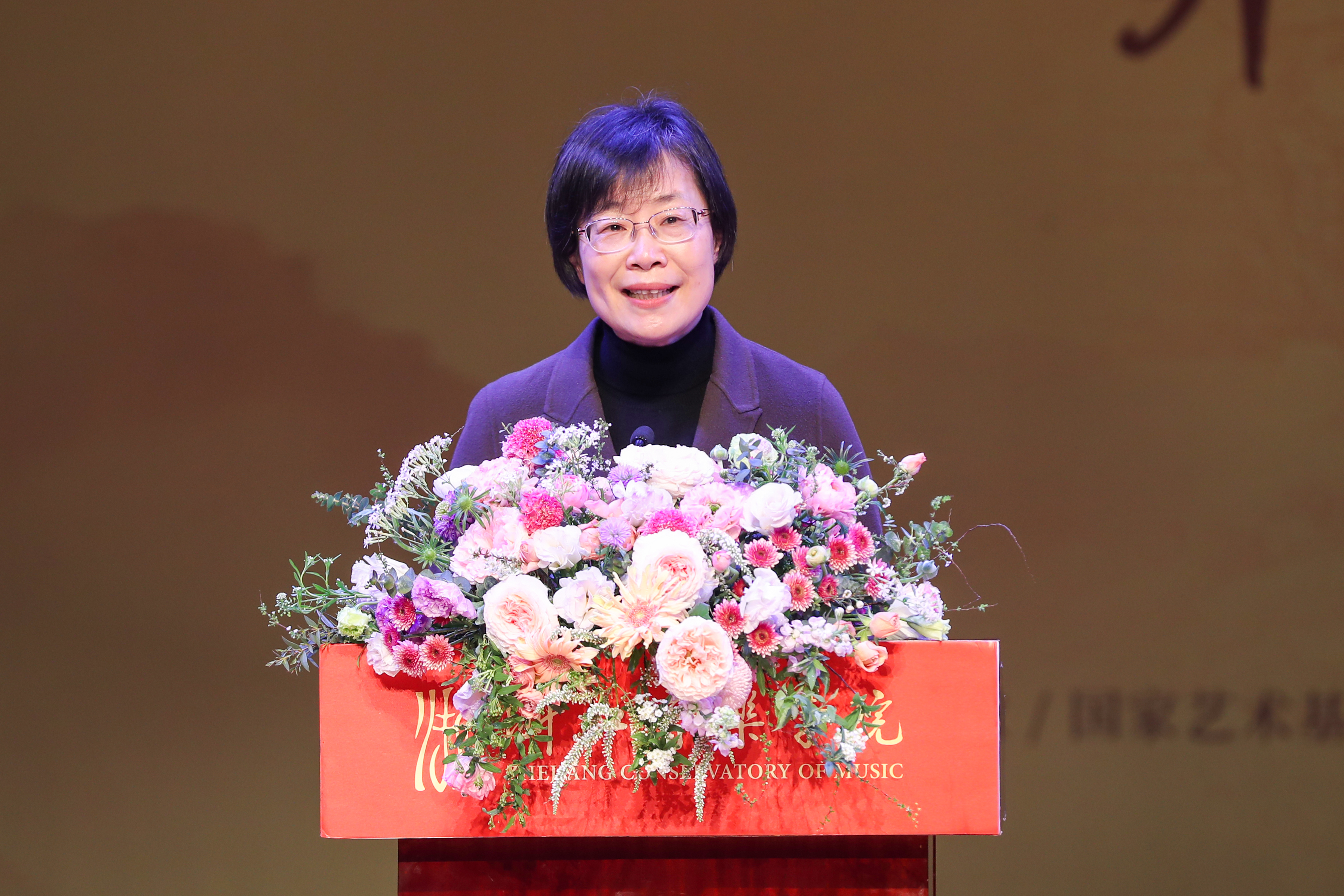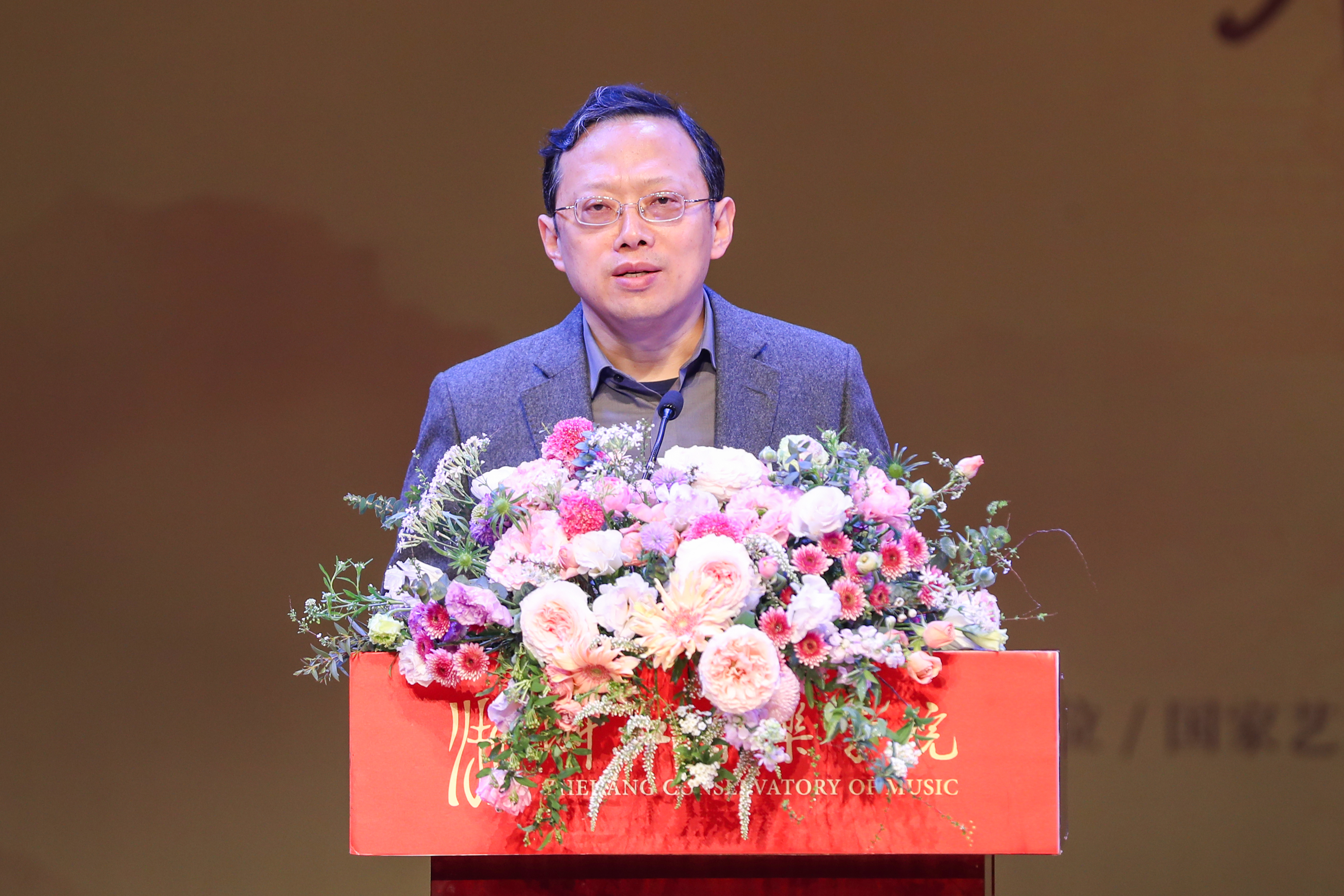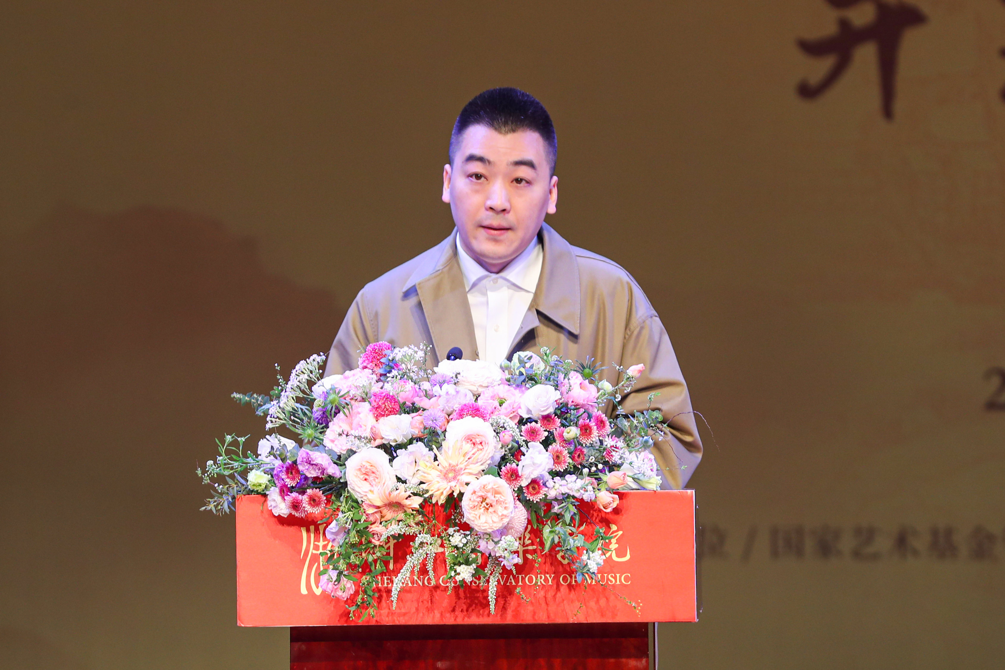 王瑞致欢迎辞。他从中国传统礼乐文化出发,深入阐释传承弘扬中国音乐文化、增强文化自信的重要性,指出该项目通过培养提升学员精湛的专业演奏技艺、优秀的人文综合修养、高度的民族文化自信和守正出新的创造精神,着力增强青年民族器乐表演人才的综合素质和能力,让他们能够行稳致远,成为新时代民族器乐演奏的领军人才,这对传承和发展民族器乐演奏这一中华优秀传统文化表现形式具有重要意义,也是浙音坚持中华优秀传统文化和民族音乐的传承创新、推动民族音乐人才的高水平培养与中华美育精神赓续传承的重要体现。