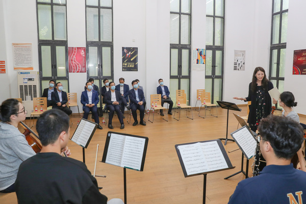 来颖杰一行深入教学一线,察看了民族乐队学院、歌剧学院、室内乐学院排练现场,观看了舞蹈学院课程思政成果《半条棉被》《一条大河》,并旁听学院青年讲习所教师带来的《我将无我、不负人民》音乐思政课。