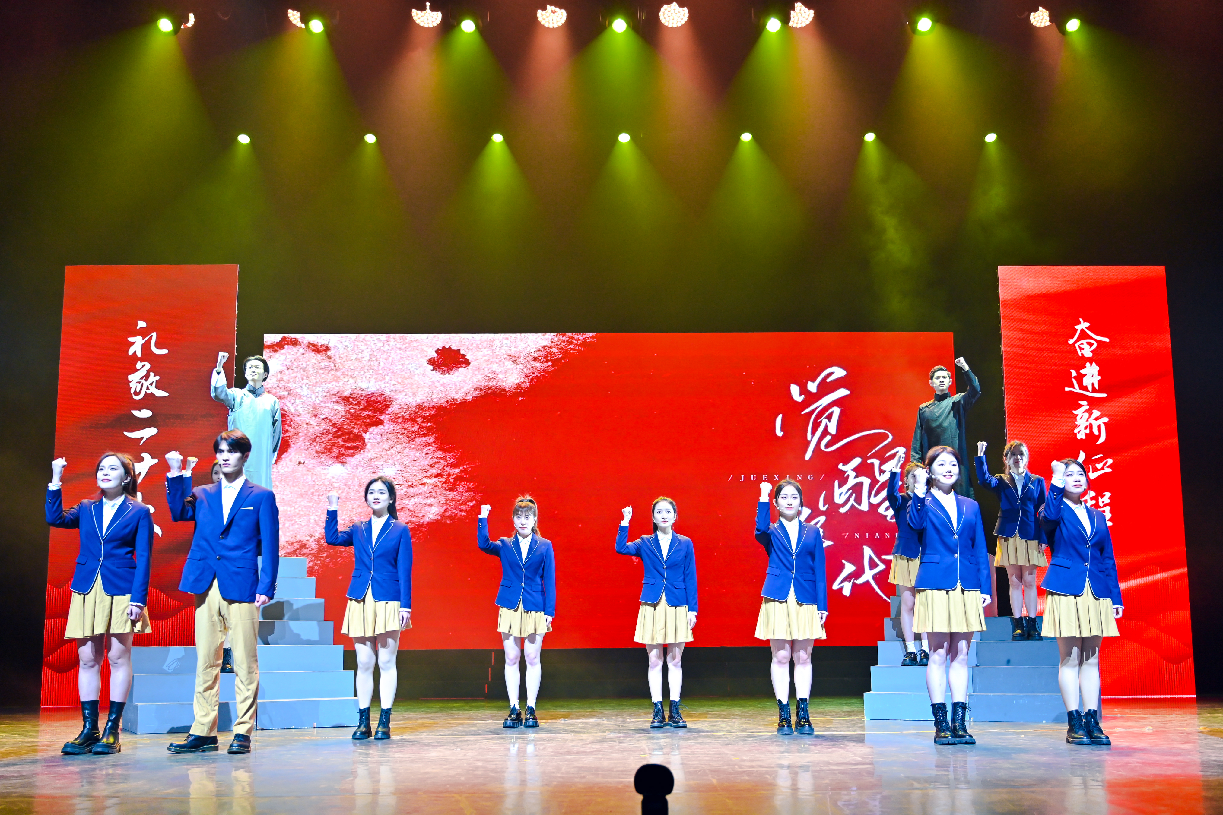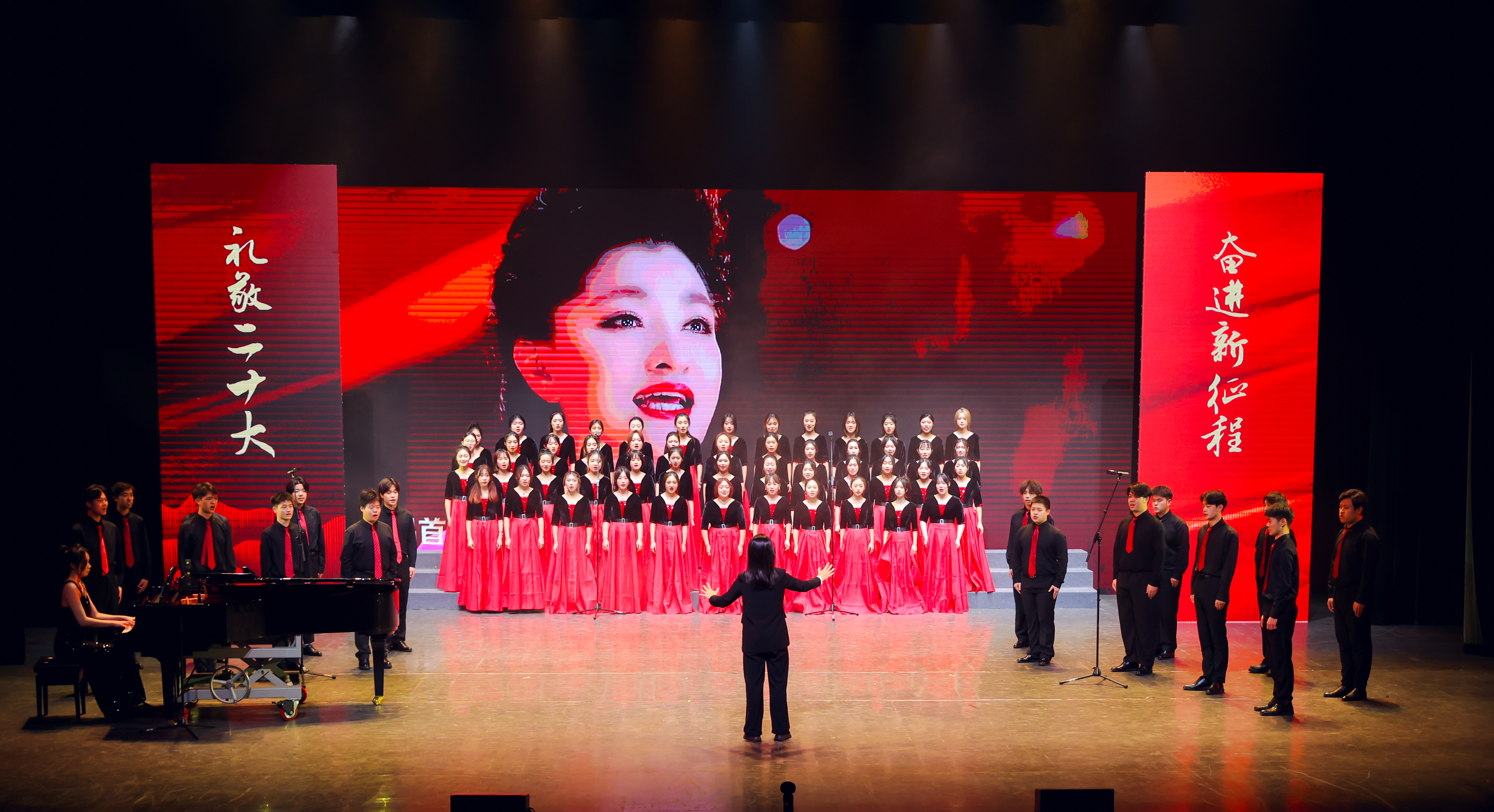 展演节目紧扣学习宣传贯彻党的二十大精神主题主线,让党的二十大精神通过艺术形式呈现,将党的二十大报告中的“伟大建党精神”“用好红色资源”“青年强,则国家强”“弘扬革命文化”“传承中华优秀传统文化”等论述论点充分结合并融入,是思政课程和课程思政的一次协同和联动。演出序幕伴着有“国歌音符的延续”之称的《红旗颂》的经典旋律徐徐拉开,红旗飘扬的形象贯穿全场,音符中涌动着浙音学子炽热的爱国情怀;歌曲联唱《归途有风》《如诉盛世》《燃》,既有浙音学子的原创作品,也有紧跟“冬奥会”等现实题材的艺术演绎,充分展现浙音青年在青春赛道上勇毅奋发的“燃文化”;舞蹈《映山红》是红色经典的再演绎,“岭上开遍映山红”昭示着革命前辈永不褪色的热血青春;100年前,先进分子和进步青年们追求真理、追逐理想的岁月,在情景朗诵《觉醒年代》中再现,新时代青年承继先辈伟力投身第二个百年奋斗目标的庄严宣誓,让人心潮澎湃;钢琴独奏《我的祖国》让那条寄托无数中国人情感的“大河”以音乐的形式缓缓走入内心,淋漓尽致地表达了英雄儿女对家国的赤子之情;古风今韵的越歌表演唱《没有共产党就没有新中国》以及琵琶重奏《唱支山歌给党听》,将革命文化和中华优秀传统文化融为一体,以戏韵国风全新演绎红色经典,深情表达对党的无限热爱;声乐小组唱《在希望的田野上》,展现了新时代中国共产党人在希望的田野上奔赴美好未来的豪情;合唱《领航》唱响了中国共产党在习近平新时代中国特色社会主义思想引领下,为实现中华民族伟大复兴中国梦而踔厉奋发、勇毅前行的凌云壮志。