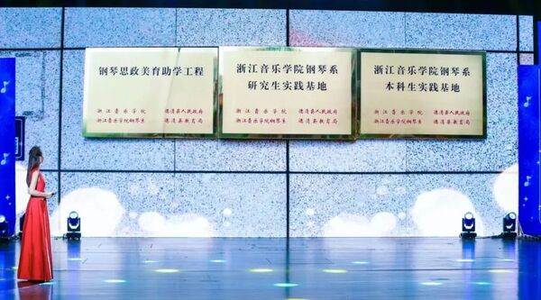 学校钢琴系与德清县教育局共同为本科生实践基地、研究生实践基地和钢琴思政美育助学工程进行视频揭牌。