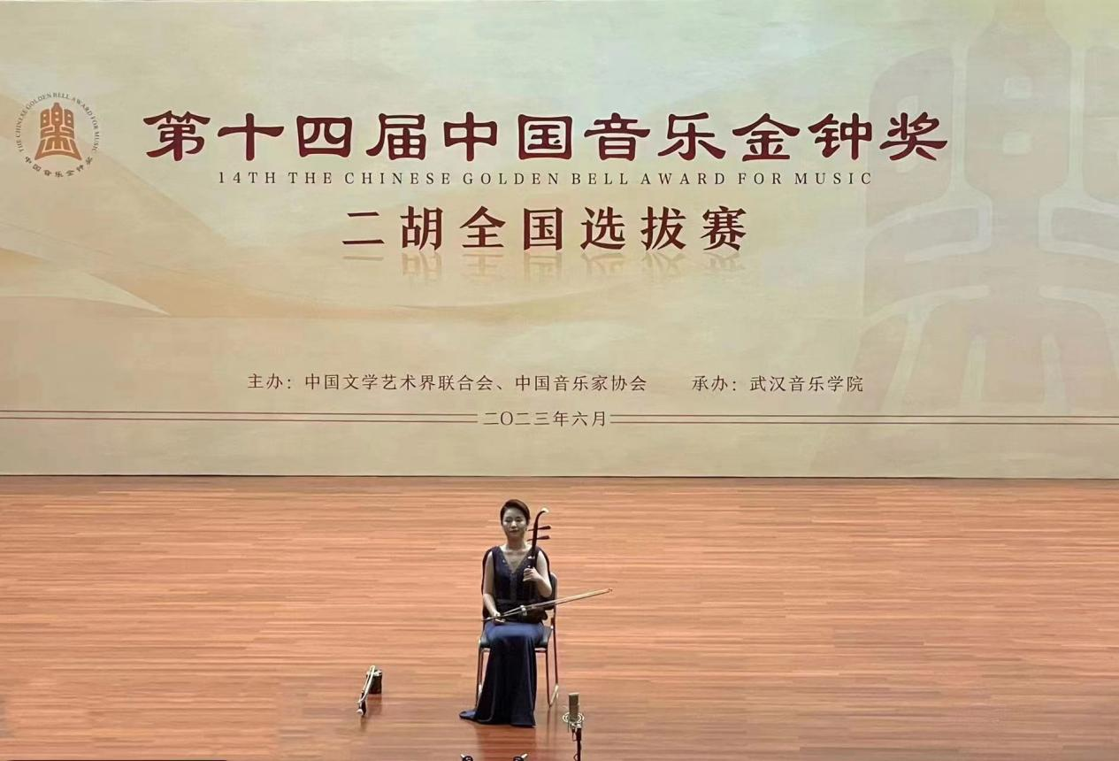 第十四届中国音乐金钟奖共设声乐(美声)、声乐(民族)、小提琴、二胡四个组别。在6月3日在天津举行的小提琴、声乐(民声)全国选拔赛中,我校有民声组5人、小提琴组1人入选,另有1人直接进入全国复赛;6月9日至14日,声乐(美声)、二胡全国选拔赛在武汉举行,我校分别由7人参加了声乐(美声)组、3人参加二胡组的比赛。经过激烈角逐,最终有声乐(美声)组6人、二胡组1人晋级全国复赛,另有1人直接进入全国复赛。