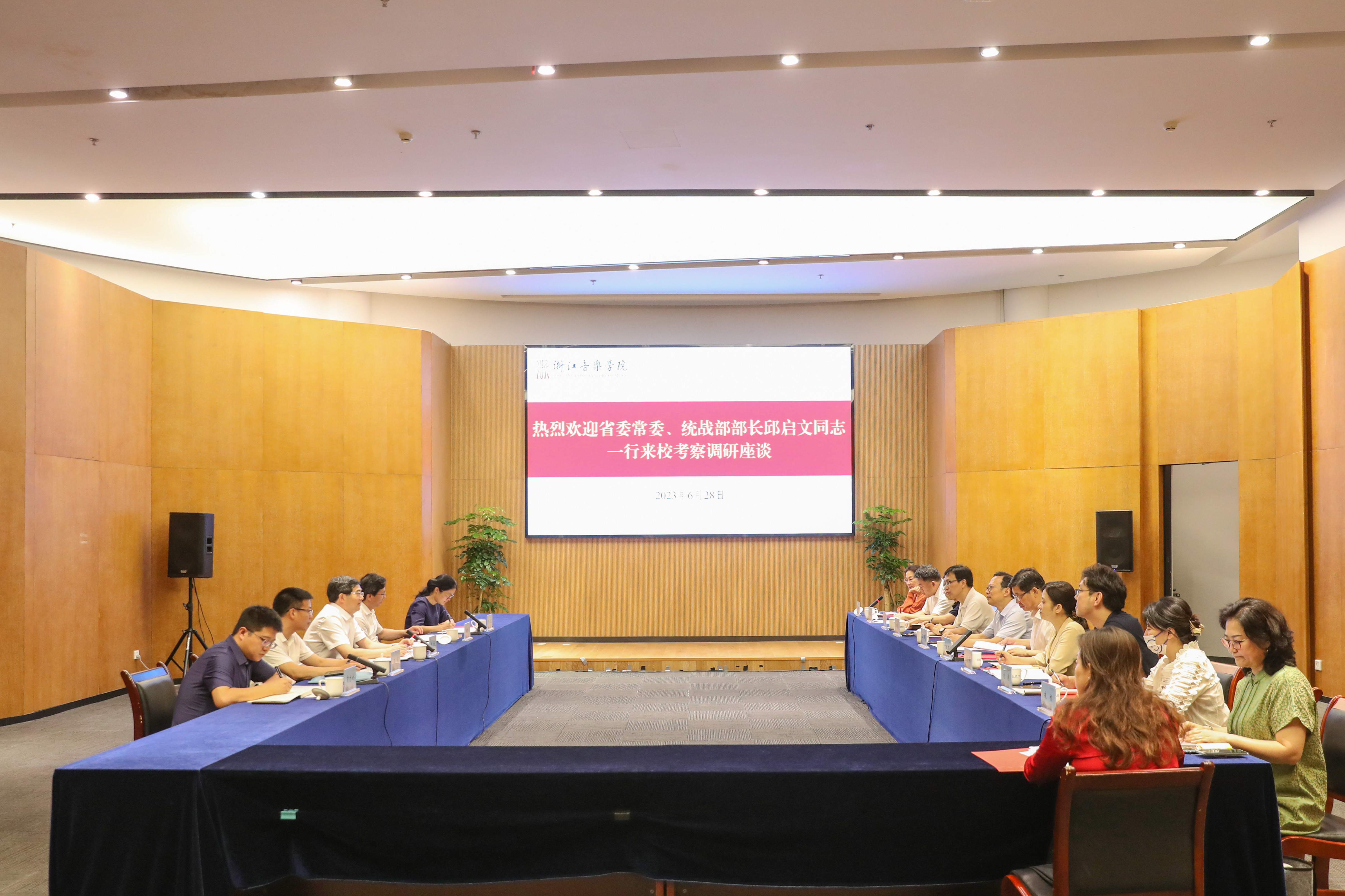 座谈会上,邱启文认真听取了干武东对学院内涵建设和统战工作等的汇报,并对学院各项事业快速高质量发展所取得的显著成效给予充分肯定。他强调,高校是党外知识分子的聚集地,具有人才荟萃、智力密集、联系广泛等独特优势,是统一战线发展壮大的重要依托,是凝心聚力的重要阵地,是服务大局的重要支撑。他希望学院党委强化思想政治引领,以习近平总书记关于做好新时代党的统一战线工作的重要思想为根本遵循,深入学习贯彻落实党的二十大精神和中央、省委关于高校统战工作的部署要求,弘扬团结奋斗、爱国奋斗精神,展现党外知识分子推动浙音高质量发展、服务浙江文化强省建设的担当作为。要坚持问题导向,以学习贯彻习近平新时代中国特色社会主义思想主题教育为契机,结合学院自身实际,针对统战工作体制机制、干部使用、人才培养等方面开展专项调研,列出问题清单,研究具体措施,创新推进统战工作,把铸牢中华民族共同体意识教育融入育人全过程,守牢统战领域底线防线。要坚持立德树人,努力培养好具有家国情怀、德艺双馨的新时代艺术人才,紧紧围绕服务助推省委“三个一号工程”, 充分发挥浙音高层次党外知识分子、海归人才集聚的优势作用,积极助力服务省委重大决策部署在浙音走向纵深、取得实效,把中央省委赋予浙音的责任履行好。