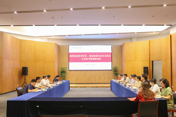 6月28日上午,省委常委、统战部部长邱启文一行来我校走访调研。省委统战部副部长王利月,学院党委书记干武东、院长王瑞、党委副书记蔡亦军等参加调研。