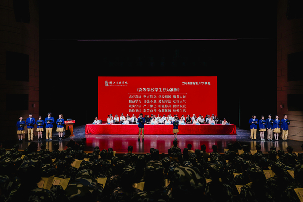 新生们集体诵读《高等学校学生行为准则》,并共同唱响校歌。开学典礼后,学院还举行了2024级新生军训动员大会。