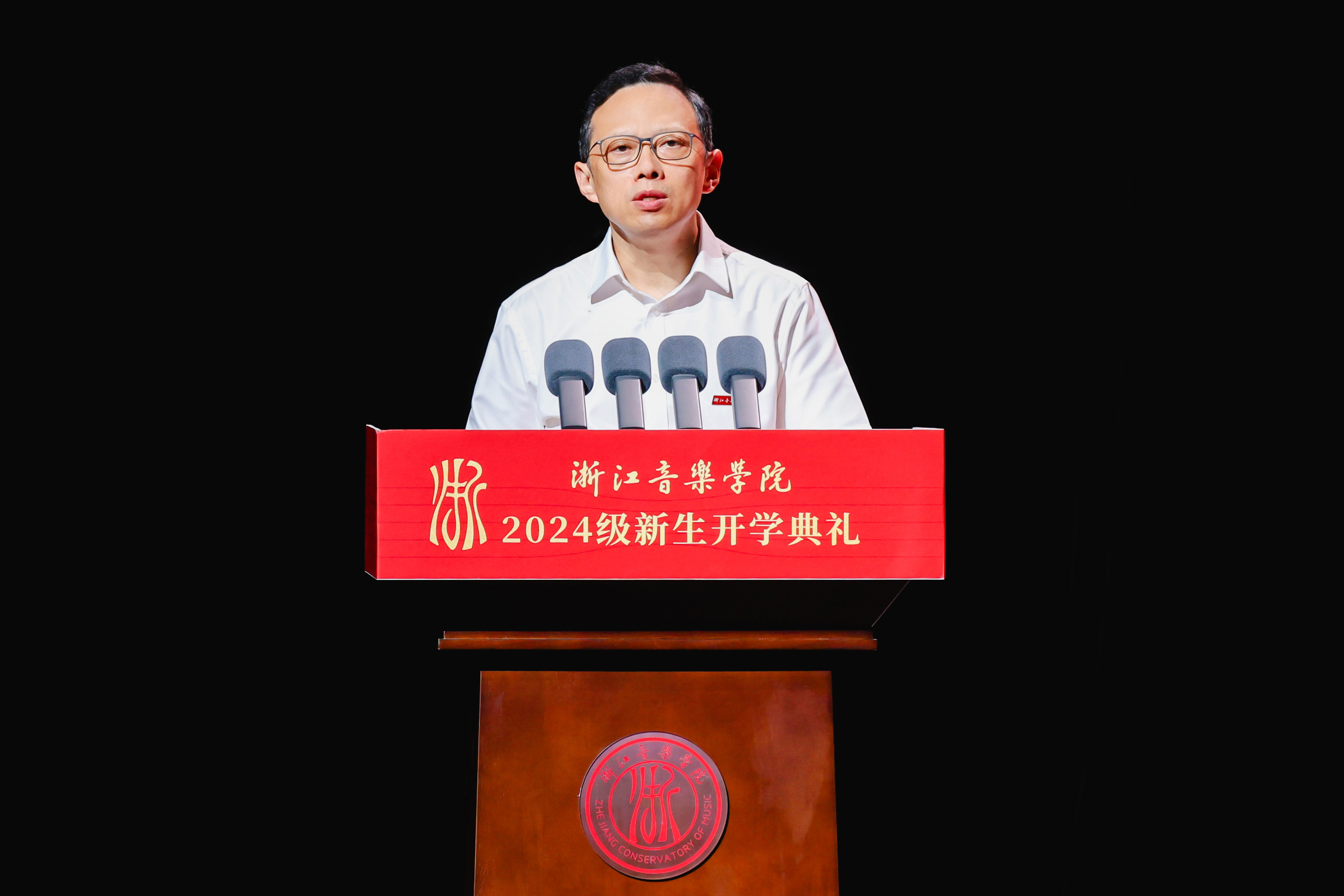 今天,学校为来自全国29个省区市和港澳台地区的698名本科生、207名研究生以及11名留学生,共916名2024级新同学举行开学典礼,同时祝贺同学们从艺考新政和两万多名考生中脱颖而出成为光荣的浙音人,今年还有28名新教师加盟浙音,为学校的事业发展增添了新生力量。在此,我首先代表学校,向大家表示热烈的欢迎!
